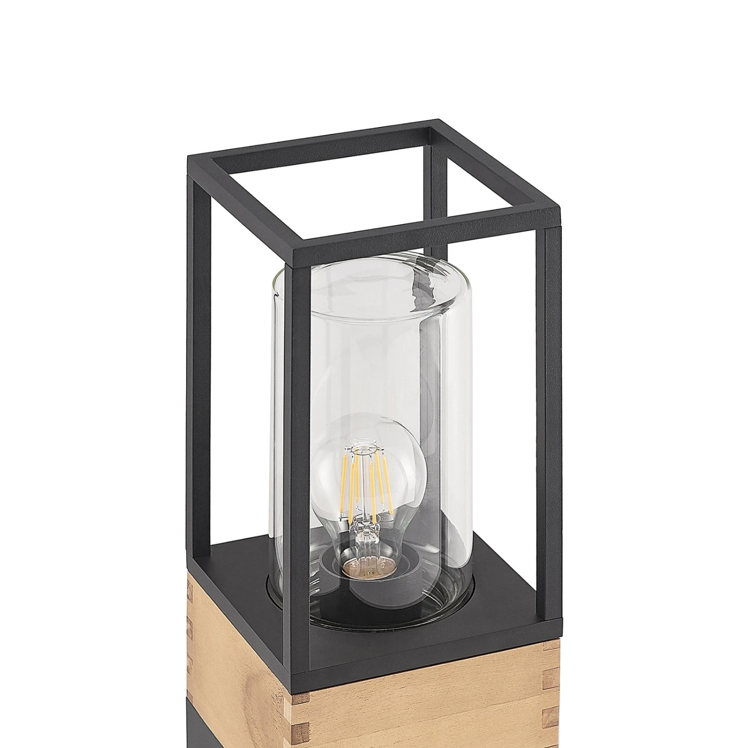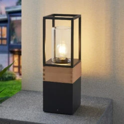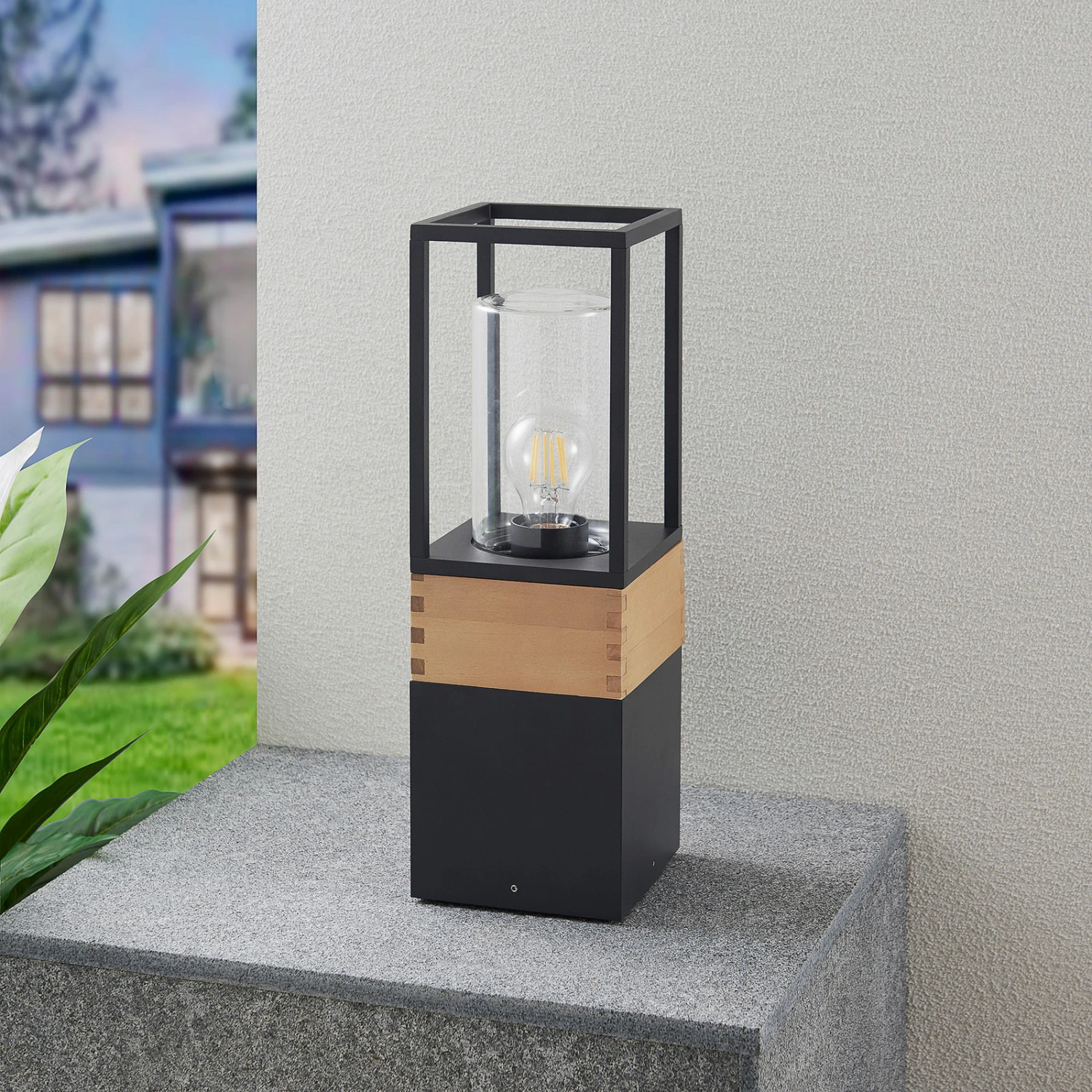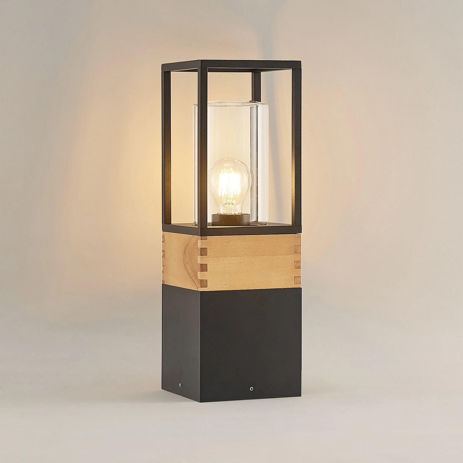 Sockelleuchte Enjan mit Teakholz-Elementen in rustikalem Look