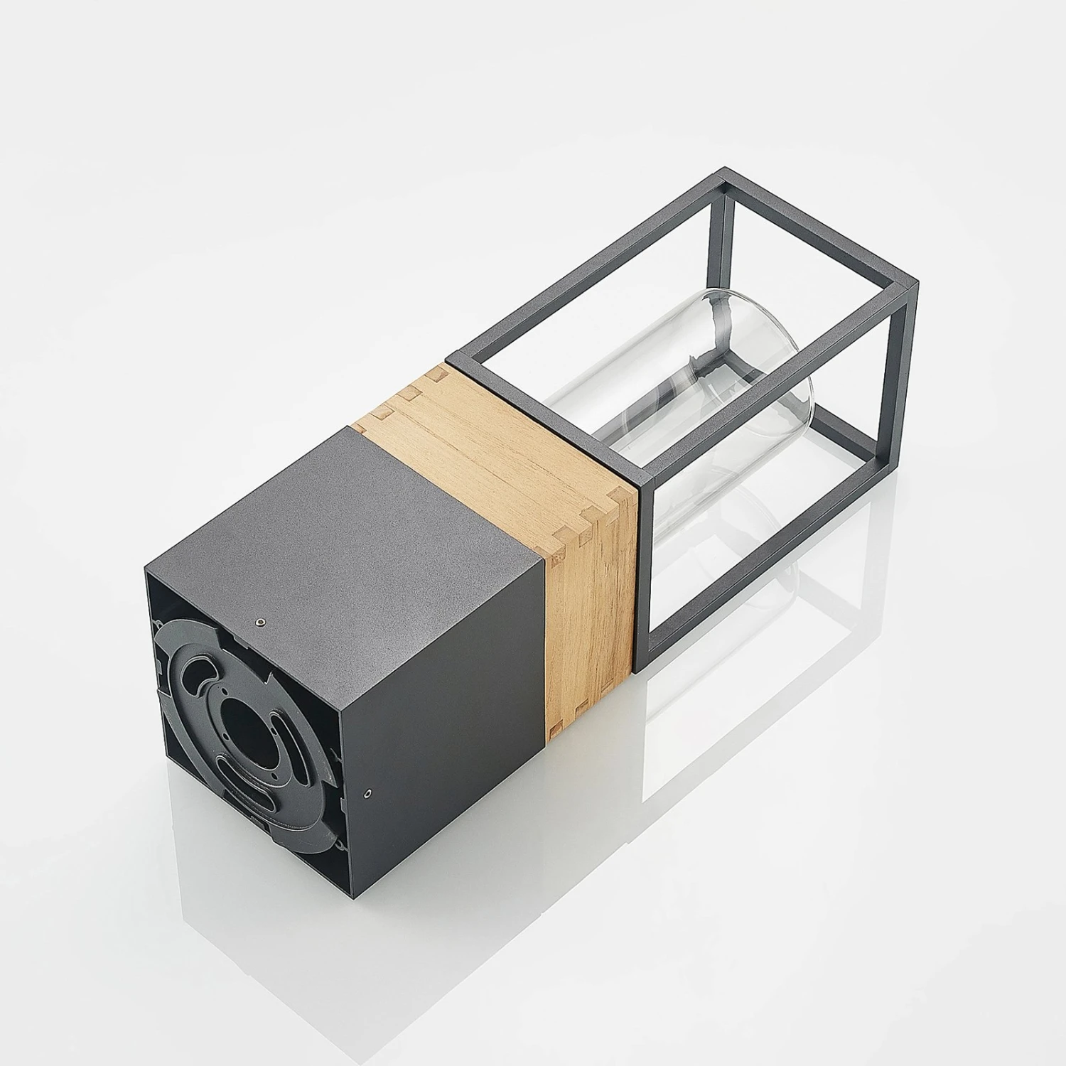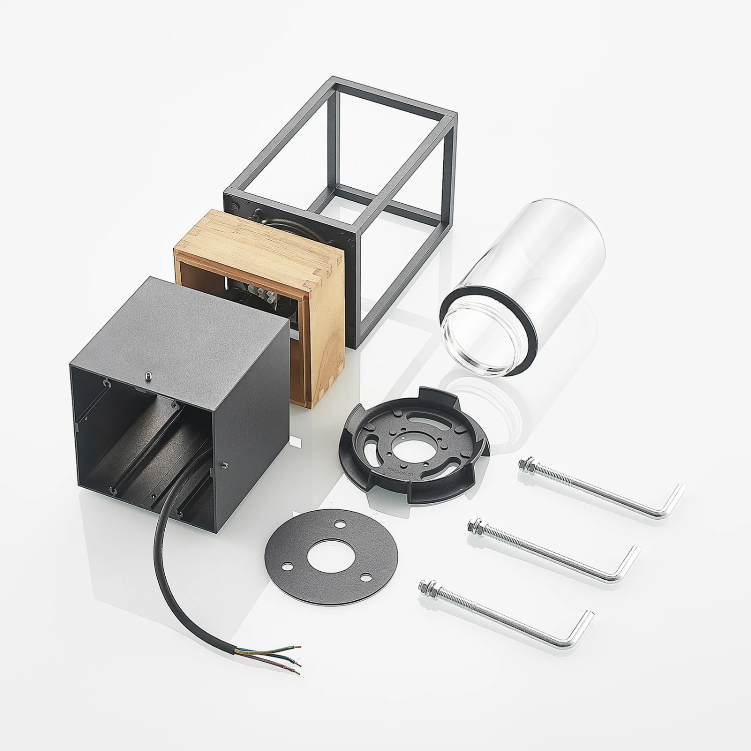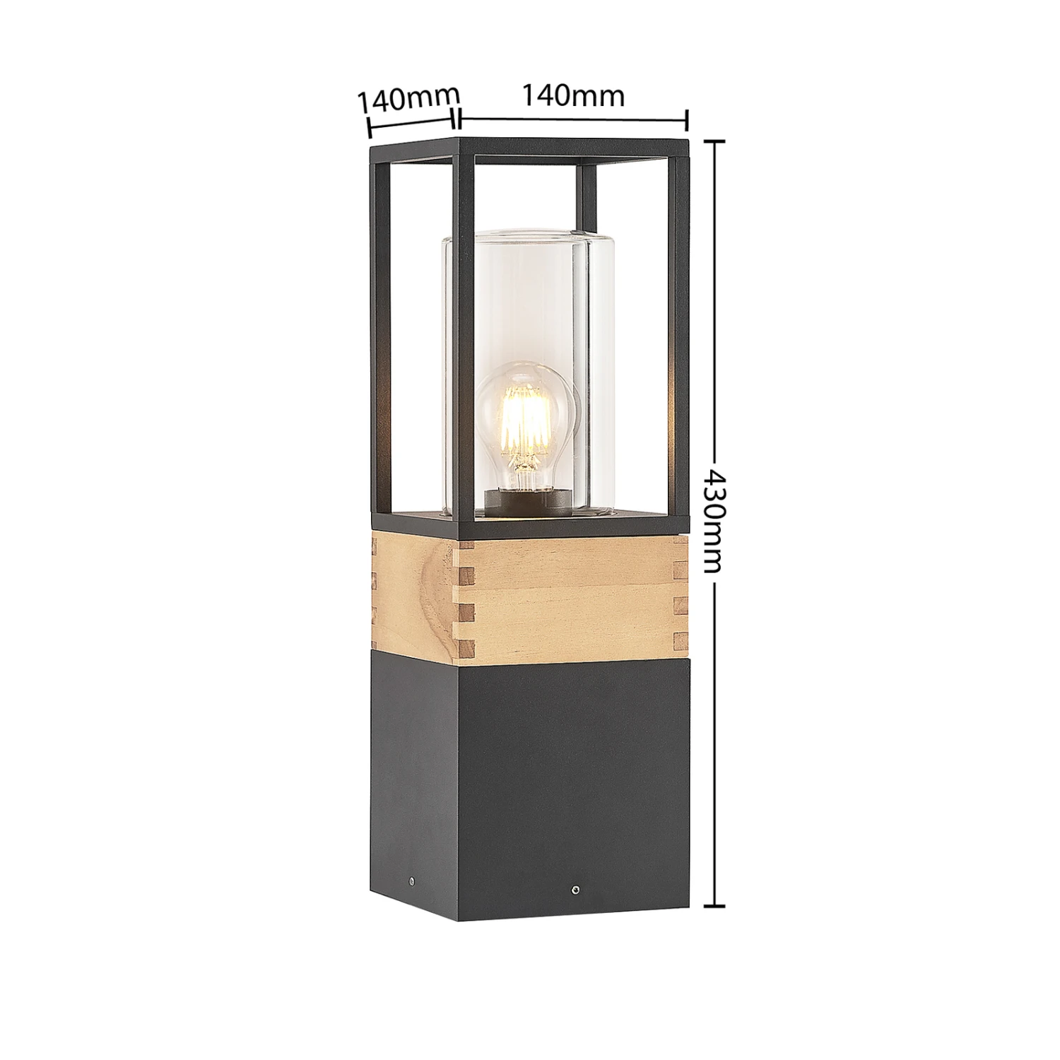 Sockelleuchte Enjan mit Teakholz-Elementen in rustikalem Look