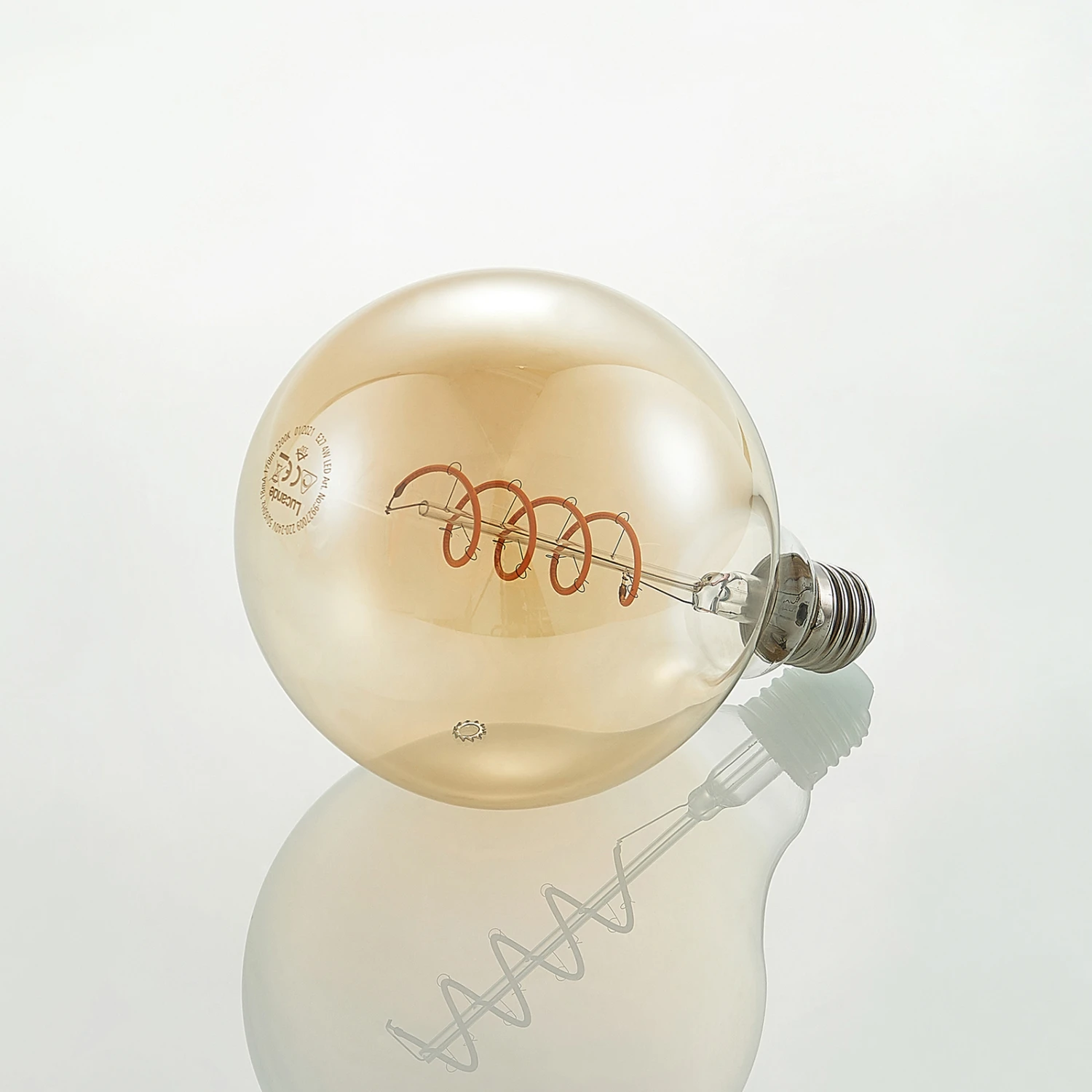 E27 G125 LED-Globelampe 4W mit amberfarbenem Glas, dimmbar, CRI >; 90, in praktishcem 5er-Set