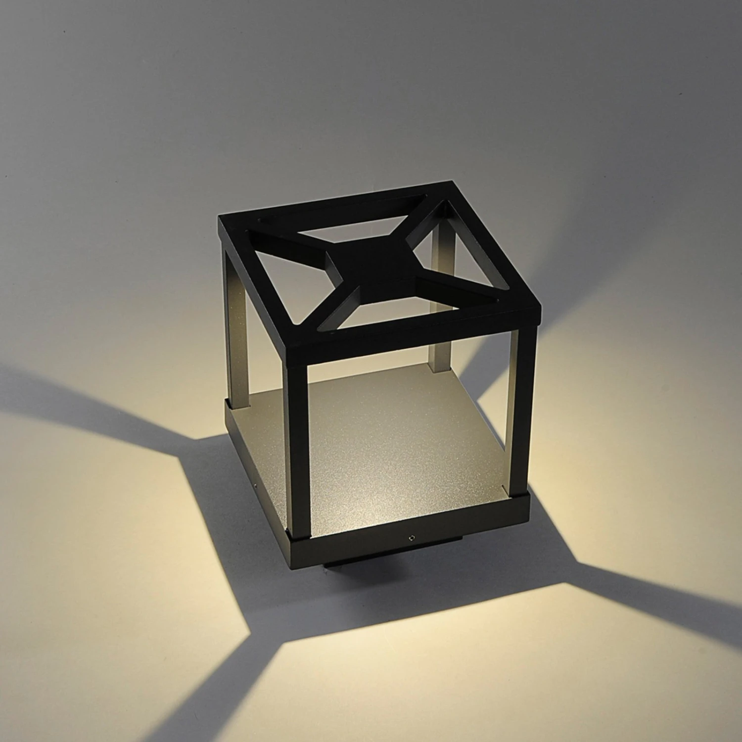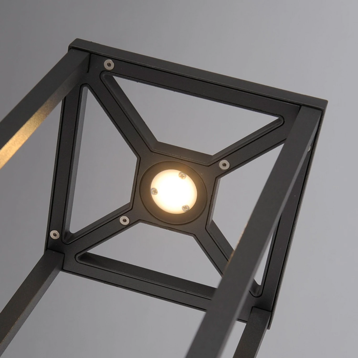 Das Gestell dieser LED-Sockellampe ist schmal und man kann gewissermaßen durchschauen, so dass der Anblick angenehm leicht erscheint. Die LED-Leuchtmittel – ein Produkt von Cree – sitzen im oberen Teil der Leuchte und strahlen nach unten. Mit dieser Bauform wird indirekter Lichtschein gewährt, der sehr angenehm erscheint und weich in die Umgebung eines Hauses fließt, weil man die Lichtquelle nicht direkt sieht und demnach auch nicht von Blendwirkungen gestört wird.