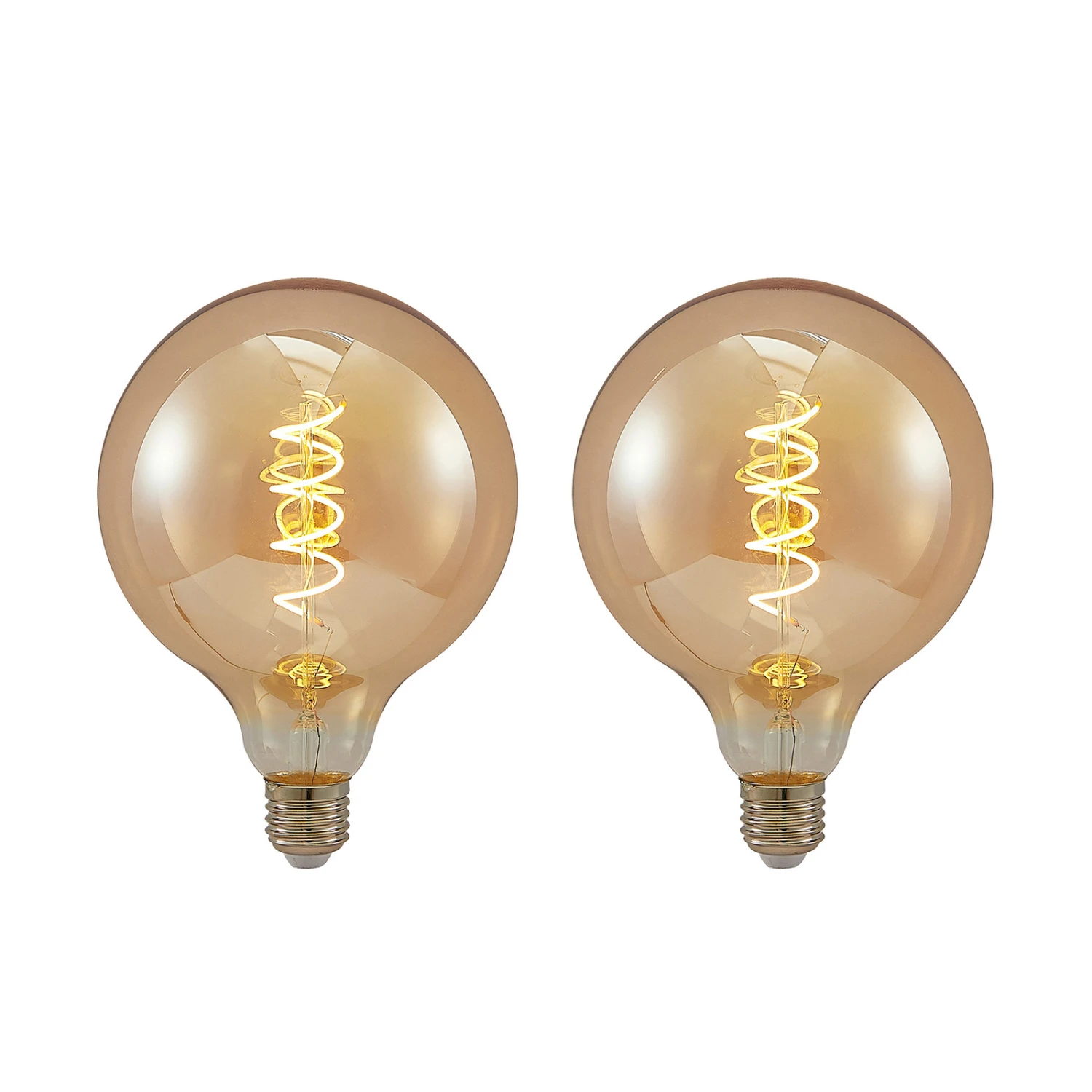 E27 G125 LED-Globelampe 4W mit amberfarbenem Glas, dimmbar, CRI >; 90, in praktishcem 2er-Set