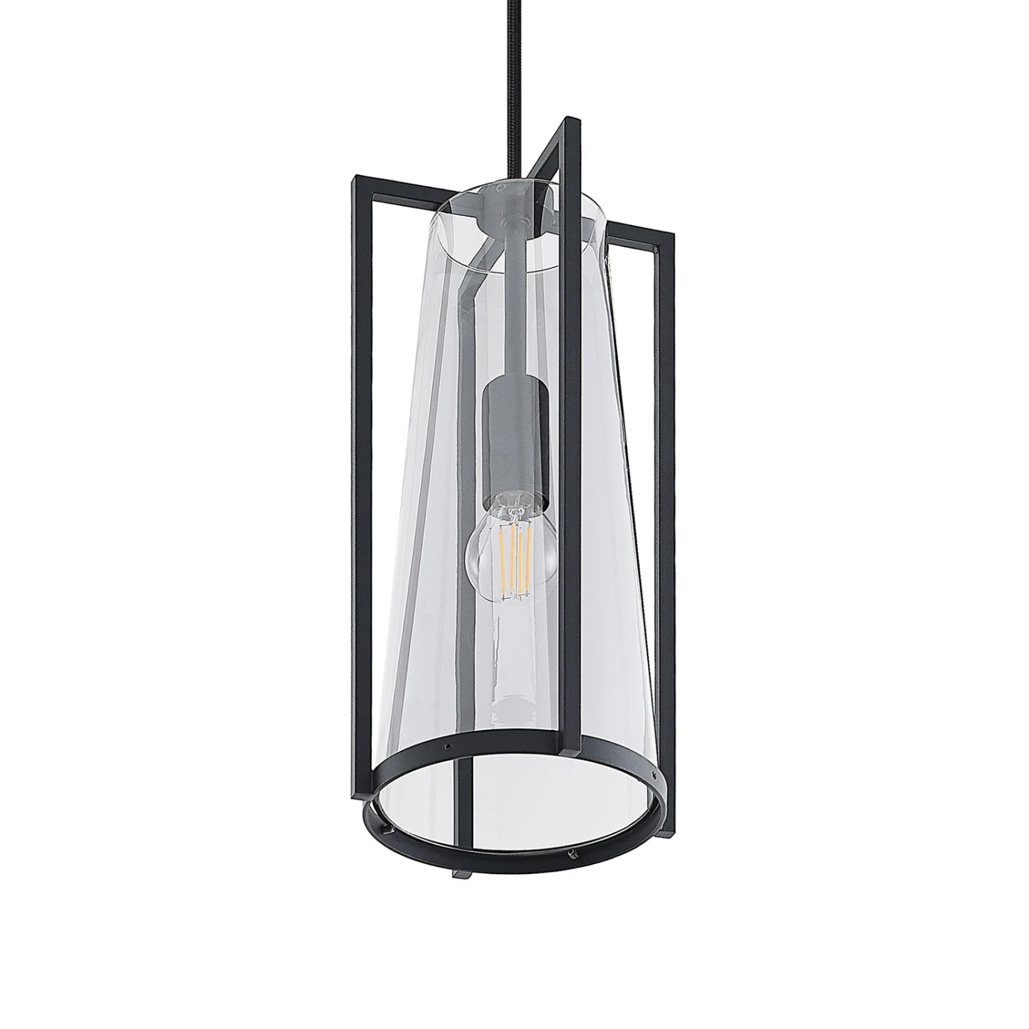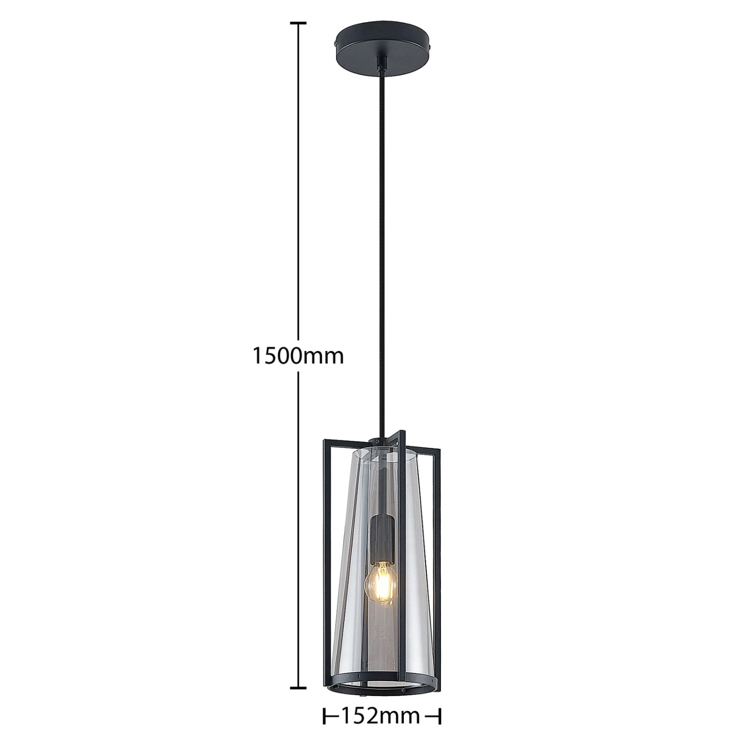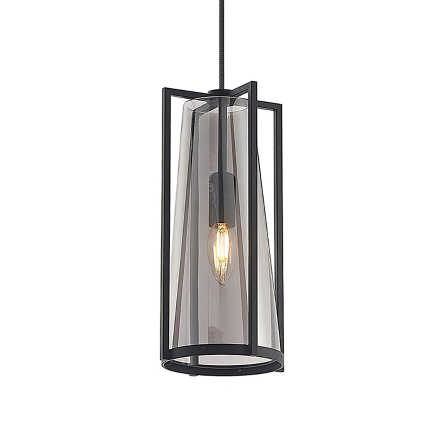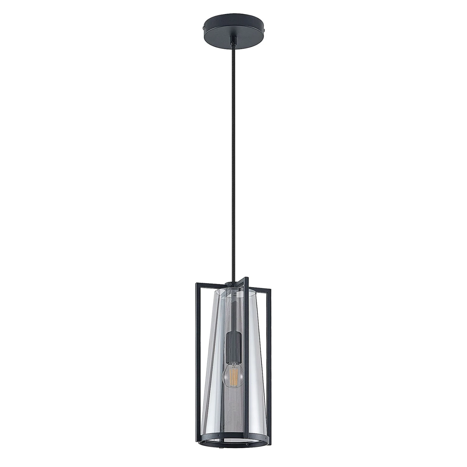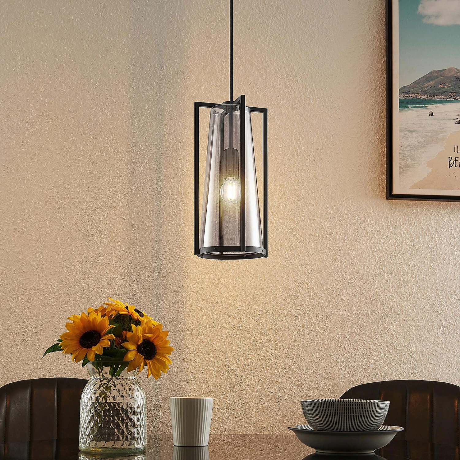 Die Pendellampe Rufina eignet sich gut für die Beleuchtung von Tischen im Wohn- und Essbereich. Sie verfügt über einen Schirm aus rauchgrauem Glas, der von einem Stahlrahmen in Schwarz umgeben ist und sich nach oben hin verjüngt. Das Design ist exklusiv und zeichnet sich durch einen sehenswerten Kontrast aus. Dabei sorgt das Rauchglas für einen interessanten, behaglichen Effekt und blendet den Lichtschein etwas ab. Bei eingeschaltetem Licht sind die Lichtquellen dennoch gut sichtbar und sollten deshalb mit Bedacht gewählt werden und gerne den klassischen Glühlampenlook besitzen, wie es auch auf Filamentlampen zutrifft.