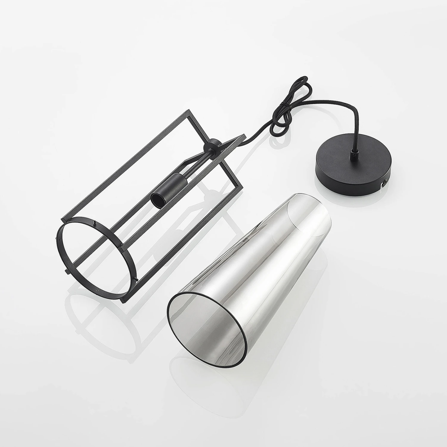 Einflammige Pendelleuchte Rufina mit Schirm aus Rauchglas, exklusives Design