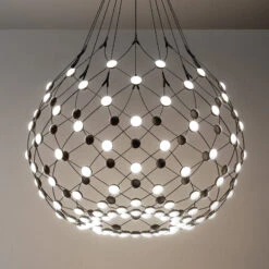 Mesh, für die Francisco Gomez Paz im Jahr 2016 mit dem Red Dot „Best of the Best“ Design Award geehrt wurde, besteht aus einem Netzgebilde aus miteinander verbundenen Kabeln. An den Schnittpunkten sind LEDs in runden Kunststofflinsen verbaut. Sie geben ein sehr stimmungsvolles Licht ab. Die Vielzahl der verbauten Lichtquellen garantiert eine rundum strahlende Beleuchtung, die sich hervorragend für die Grund- oder Bereichsbeleuchtung eignet.