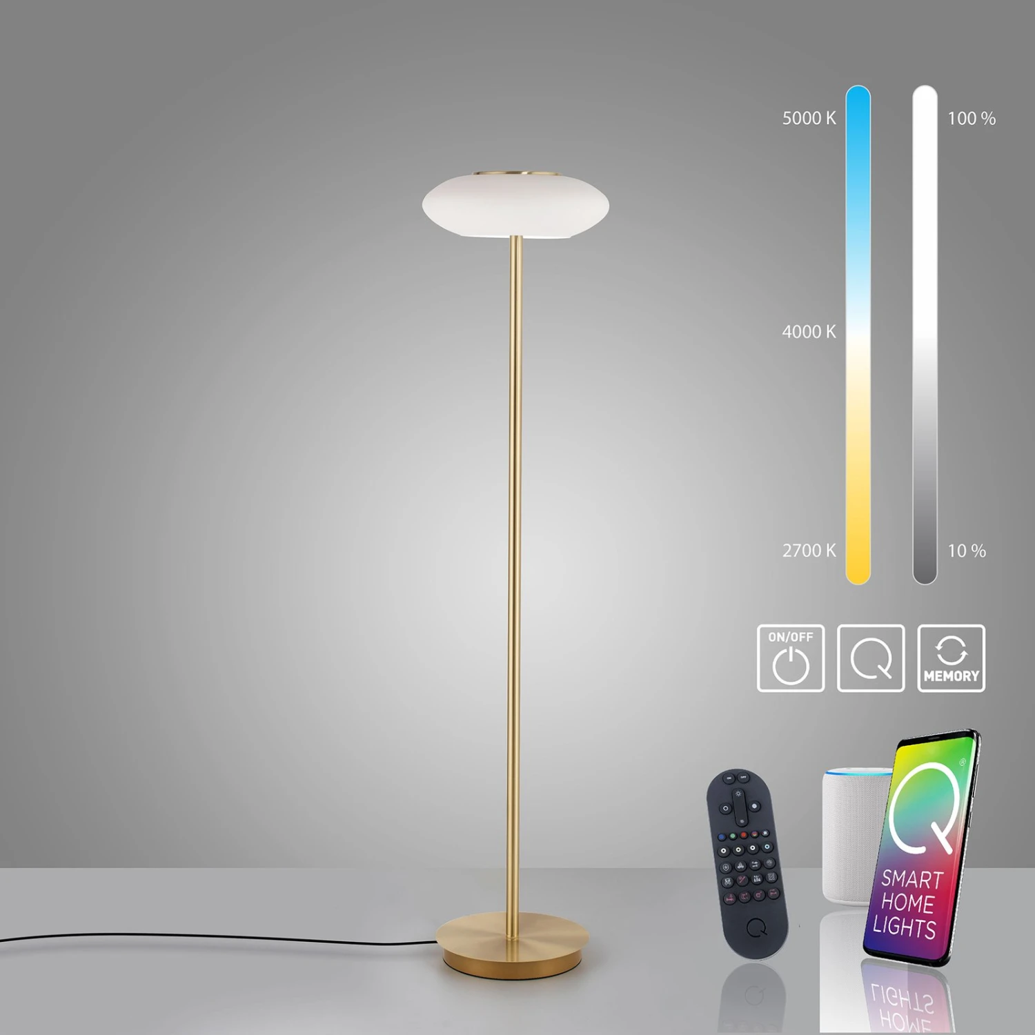 ZigBee-fähige LED-Stehleuchte Q-ETIENNE mit Dimm- und CCT-Funktion
