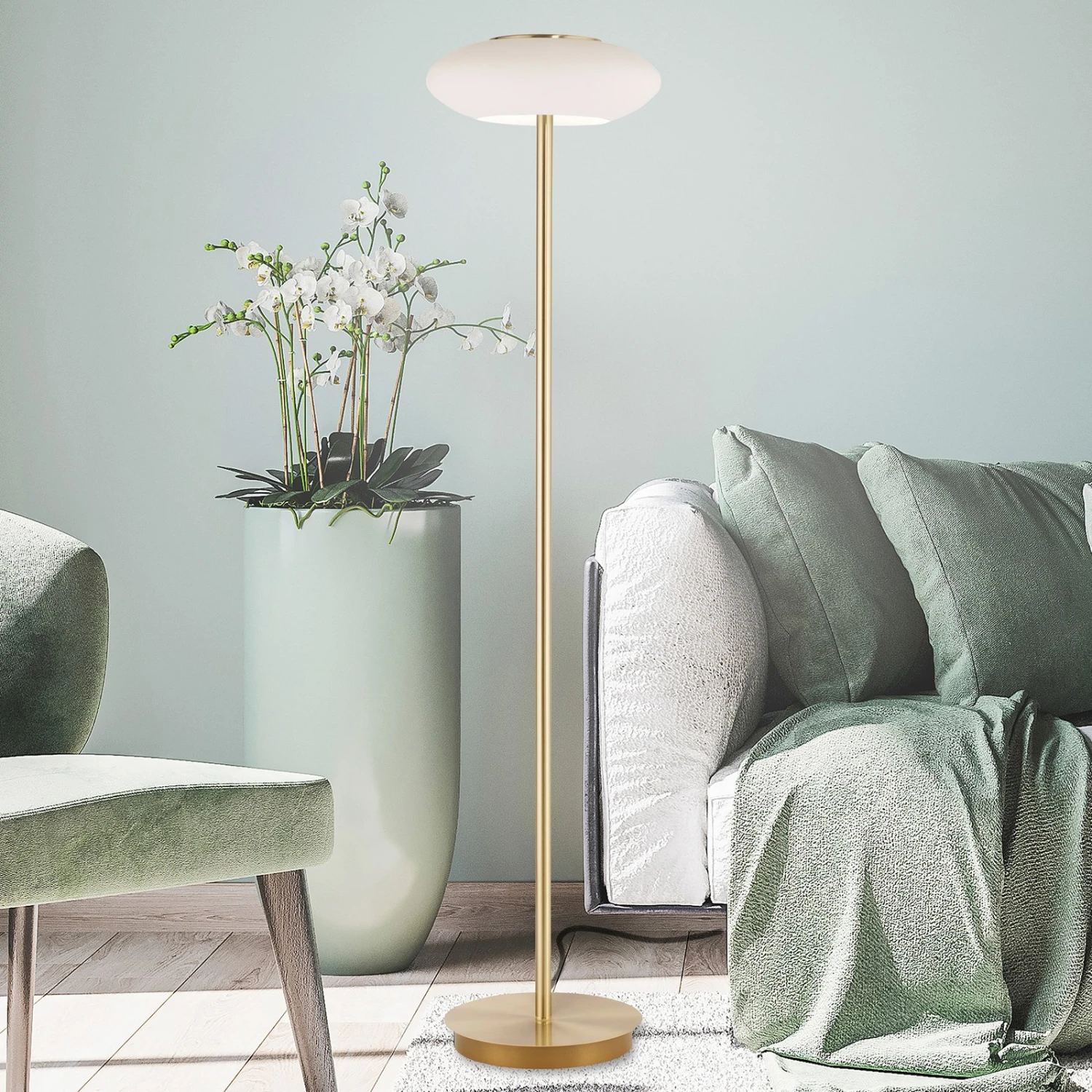Die LED-Stehleuchte Q-ETIENNE besteht aus Aluminium und Kunststoff, der runde Schirm ist aus Glas gefertigt. Durch ihr zeitloses Design fügt sie sich problemlos in unterschiedliche Umgebungen ein und kann beispielsweise im Wohn- oder Arbeitszimmer genutzt werden. Mit der beiliegenden Fernbedienung ist es möglich, die zahlreichen Funktionen der Stehlampe zu steuern. Q-ETIENNE kann gedimmt werden, außerdem lässt sich die Lichtfarbe nach Bedarf von warm- zu universalweiß verändern. Konfigurierte Lichtszenarien können angewählt werden und die Memory-Funktion lässt sich speichern. Dank ihrer ZigBee-Kompatibilität ist es möglich, die Stehleuchte in ein bestehendes Smart-Home-System zu integrieren. Somit lässt sie sich wahlweise auch per App oder Sprachbefehl steuern.
