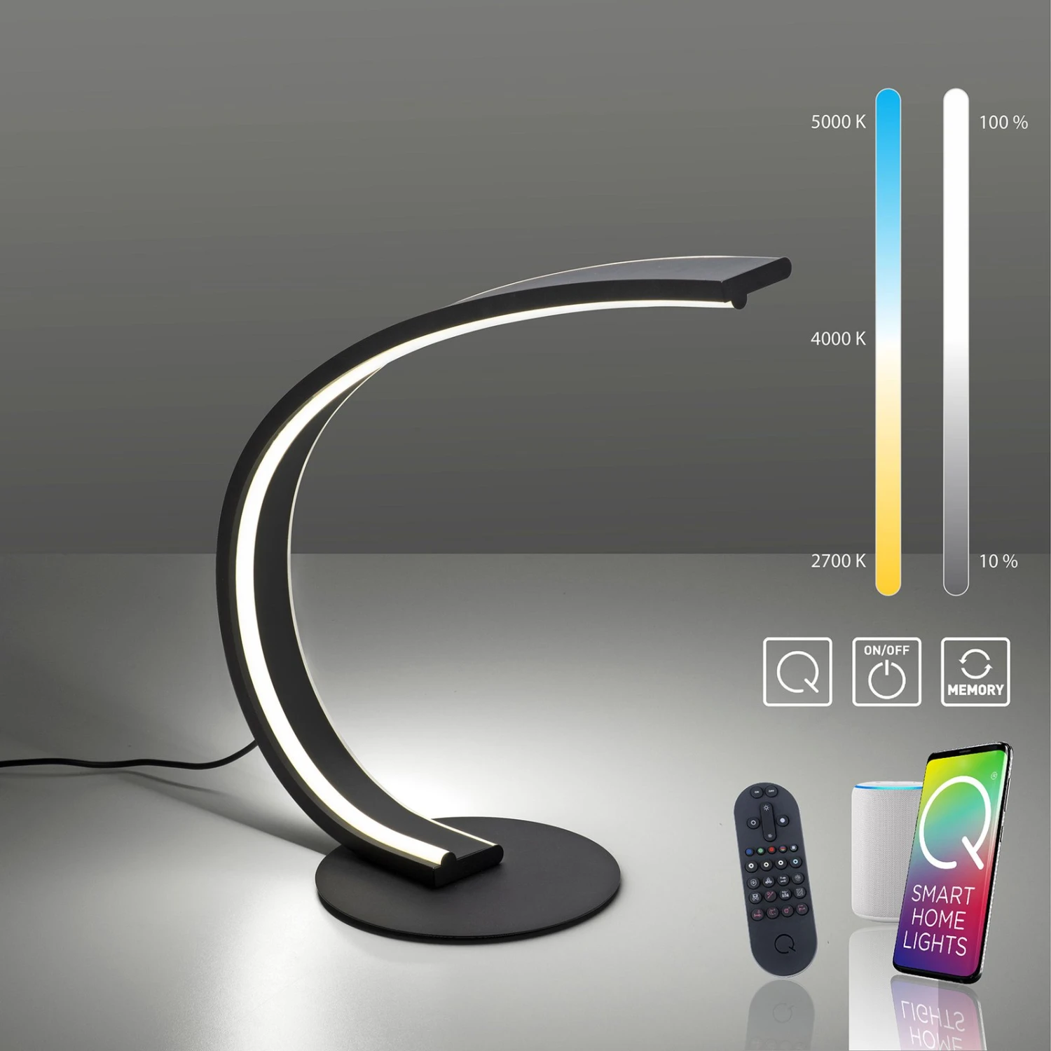 Gebogene LED-Tischleuchte Q-VITO mit Dimm- und CCT-Funktion, ZigBee-fähig