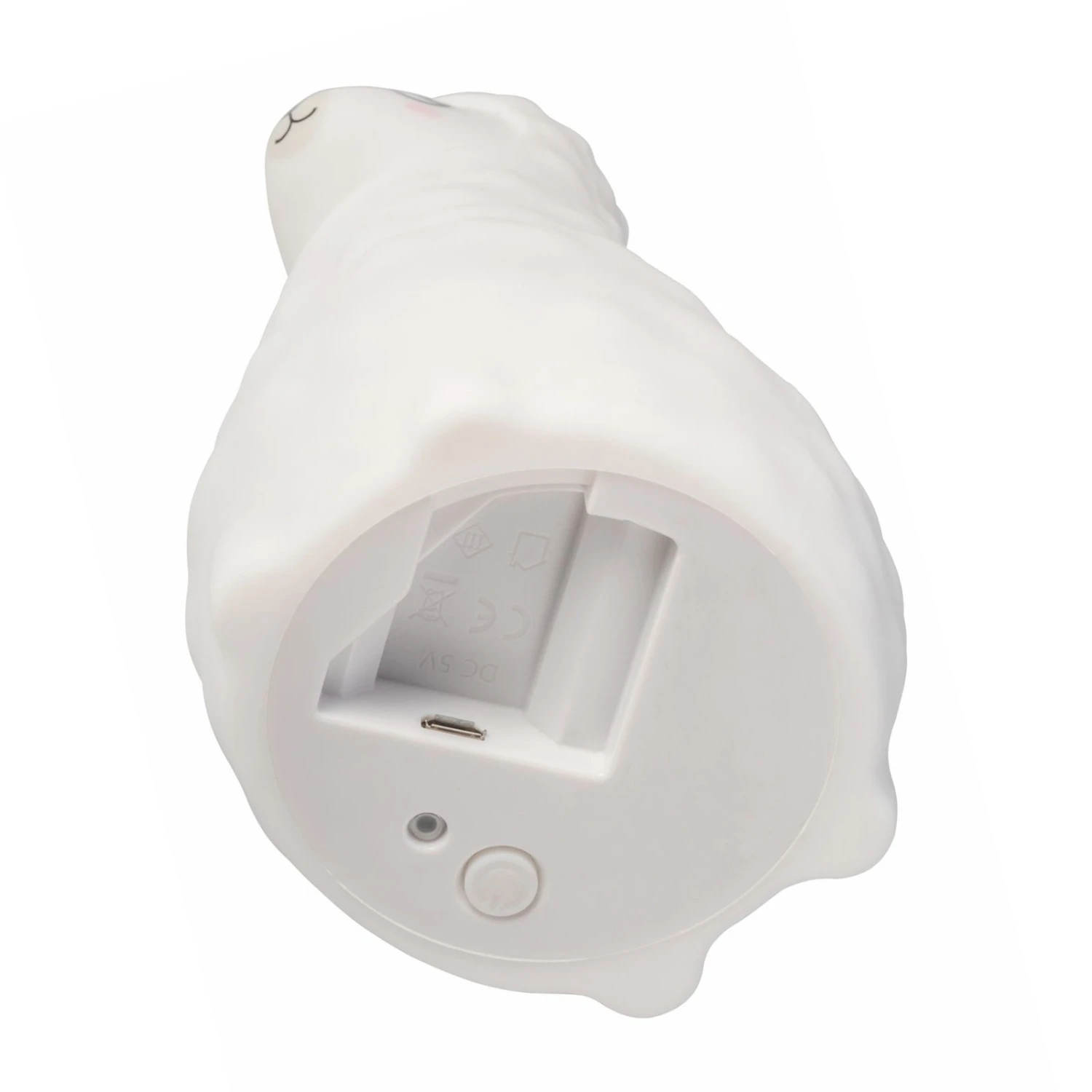 Das Night Alpaca LED-Nachtlicht kann per USB über den Anschluss auf der Unterseite geladen werden. Ein USB-Kabel gehört zum Lieferumfang. Daneben befindet sich der An- und Ausschalter. Die restliche Steuerung erfolgt per Berührung.