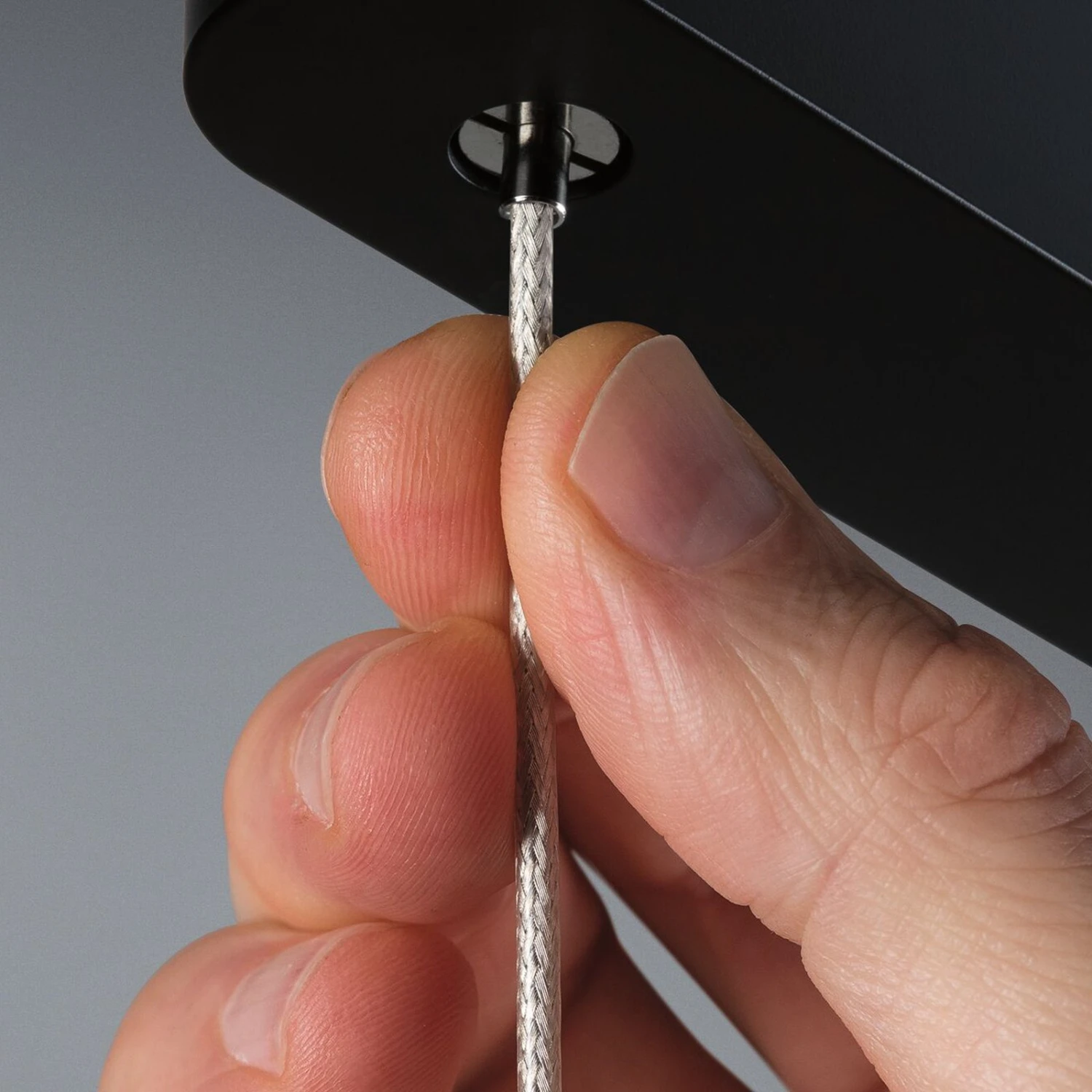 Sowohl direkt nach unten als auch indirekt nach oben gibt die aus Metall bestehende LED-Hängeleuchte Lento für das Paulmann Schienensystem URail ihr Licht ab. So wird eine gute Rundumbeleuchtung erreicht. Über zwei Seile ist sie am ebenfalls aus Metall bestehenden Baldachin angebracht.