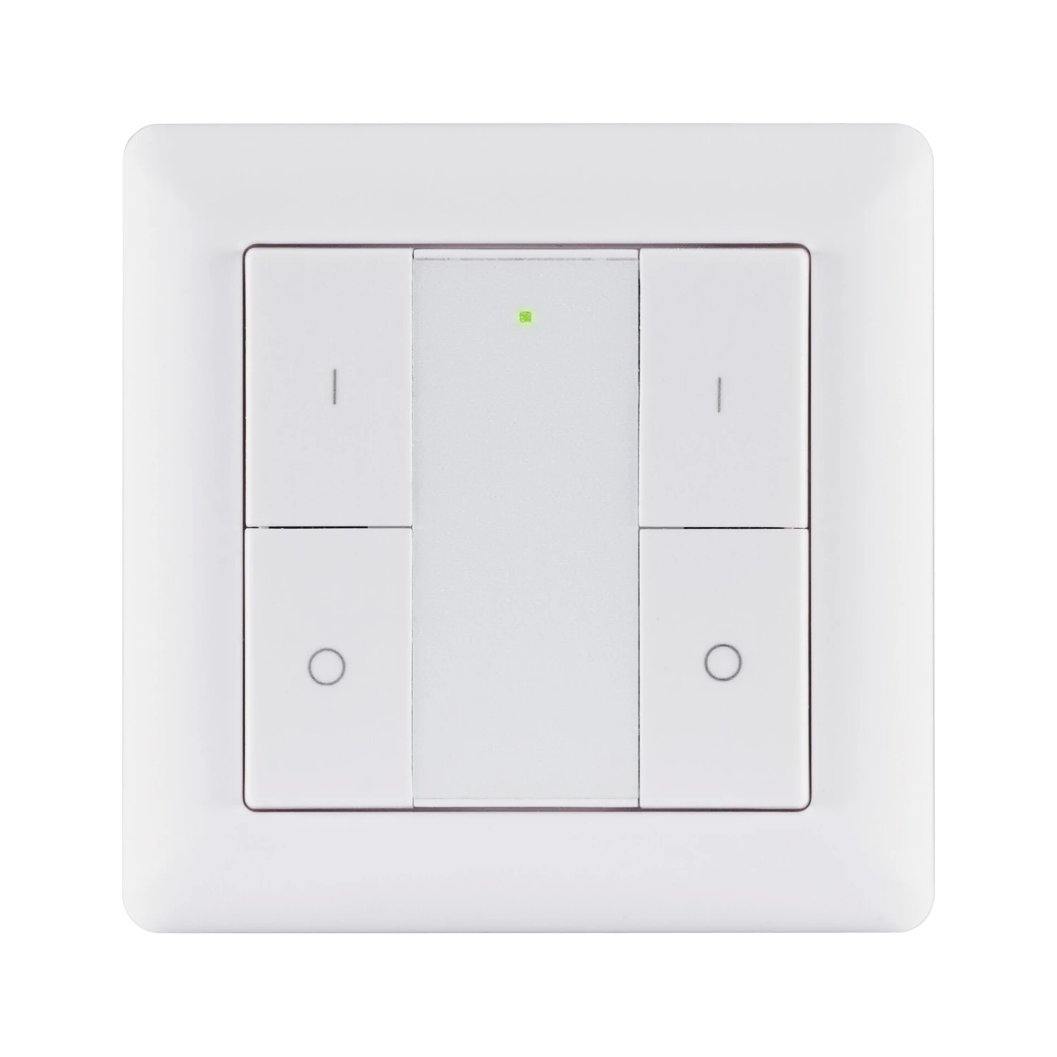 Mit diesem 2-fach-Wandtaster lassen sich ZigBee-fähige Produkte intuitiv bedienen. Beispielsweise smarte Leuchten können geschaltet und gedimmt werden. Dabei ist eine Konfiguration je nach Bedarf möglich, um beispielsweise eine gemeinsame Steuerung in Gruppen vorzunehmen. Darüber hinaus kann der Wandschalter auch über ein ZigBee-Gateway eingebunden werden, um per App beispielsweise den Wippen Szenen zuzuweisen. Dank des Batteriebetriebs ist kein Stromanschluss für den Schalter notwendig. Der Kern ist in Rahmen gängiger Schalterserien einsetzbar, sodass das einheitliche Design der Schalterausstattung in der Wohnung erhalten bleibt.