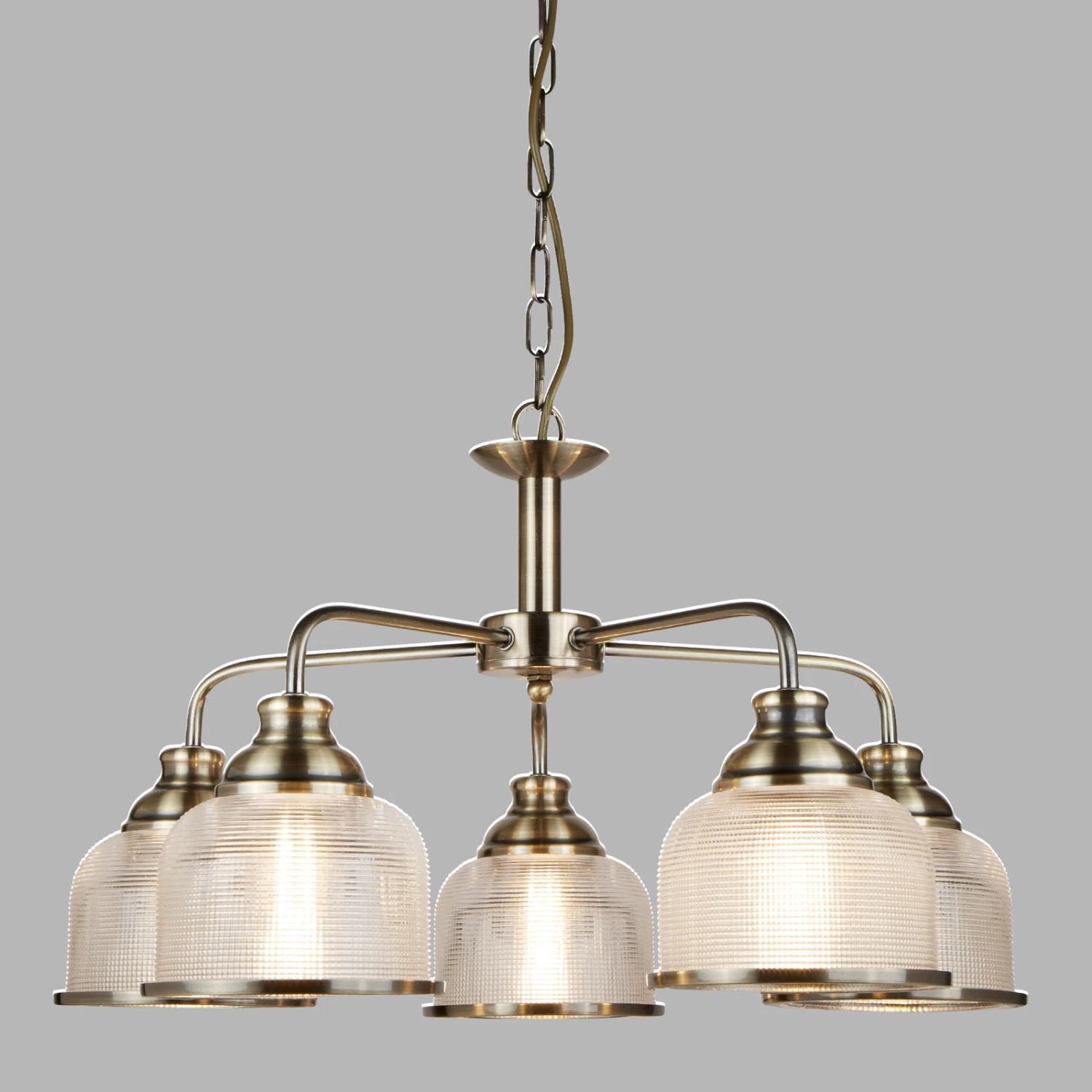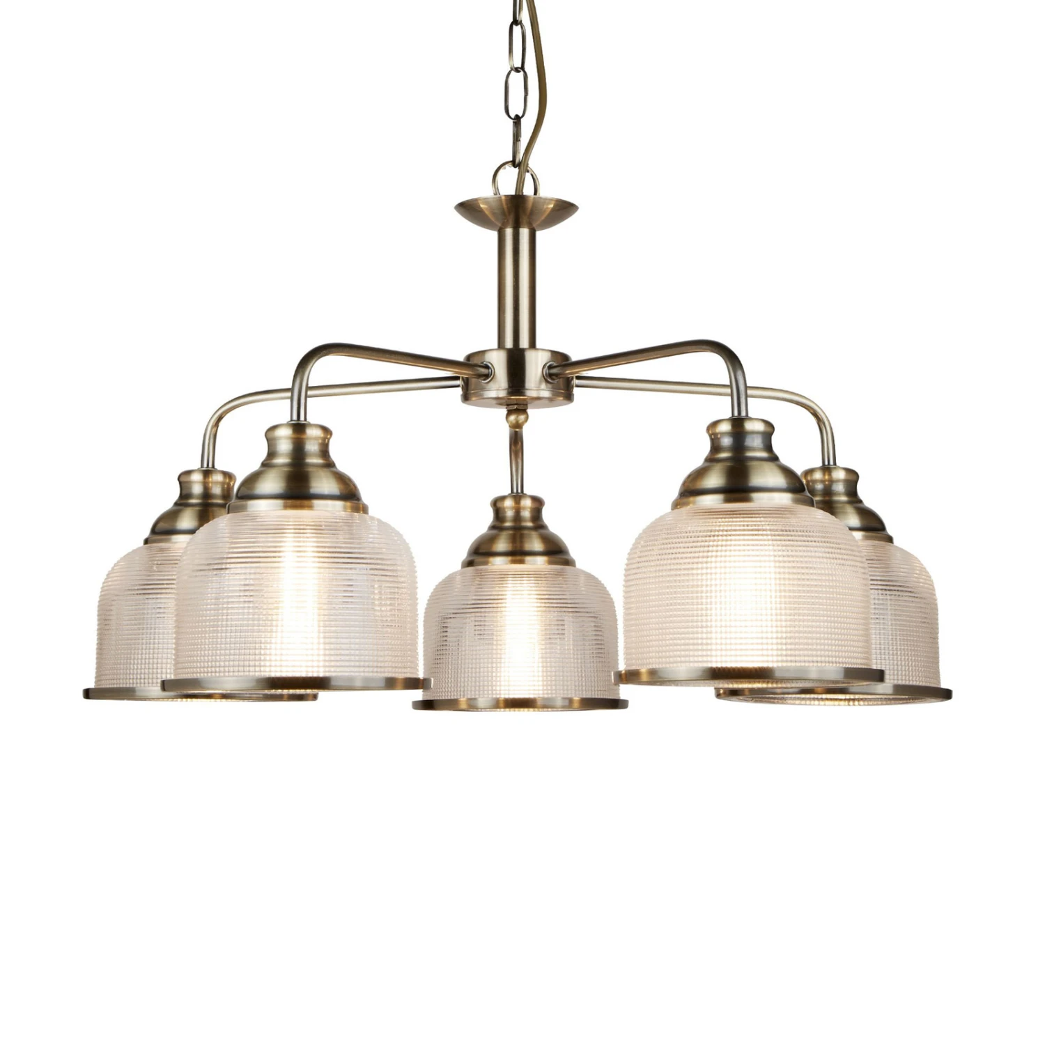 Fünfflammige Hängelampe Bistro II mit prismatischem Glas