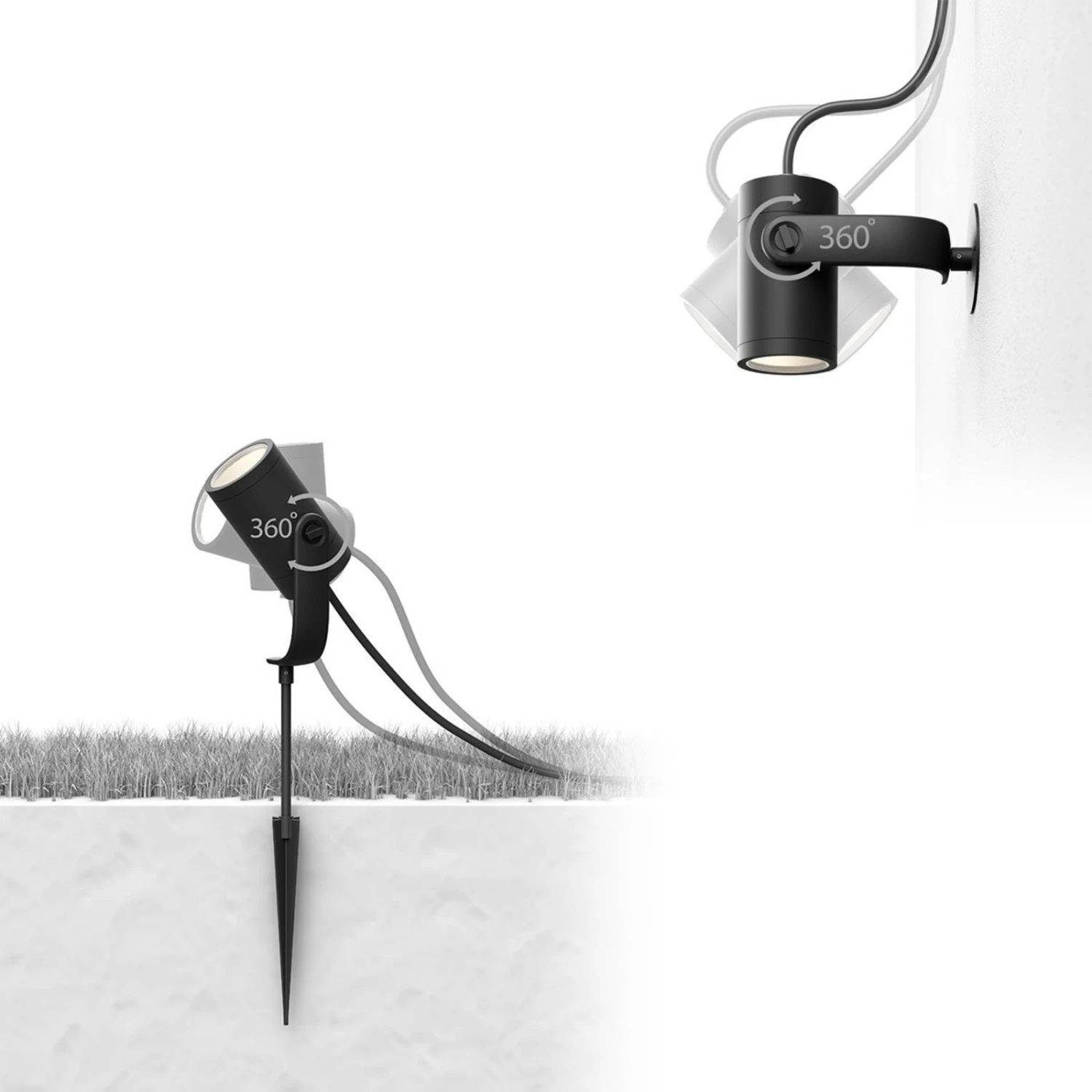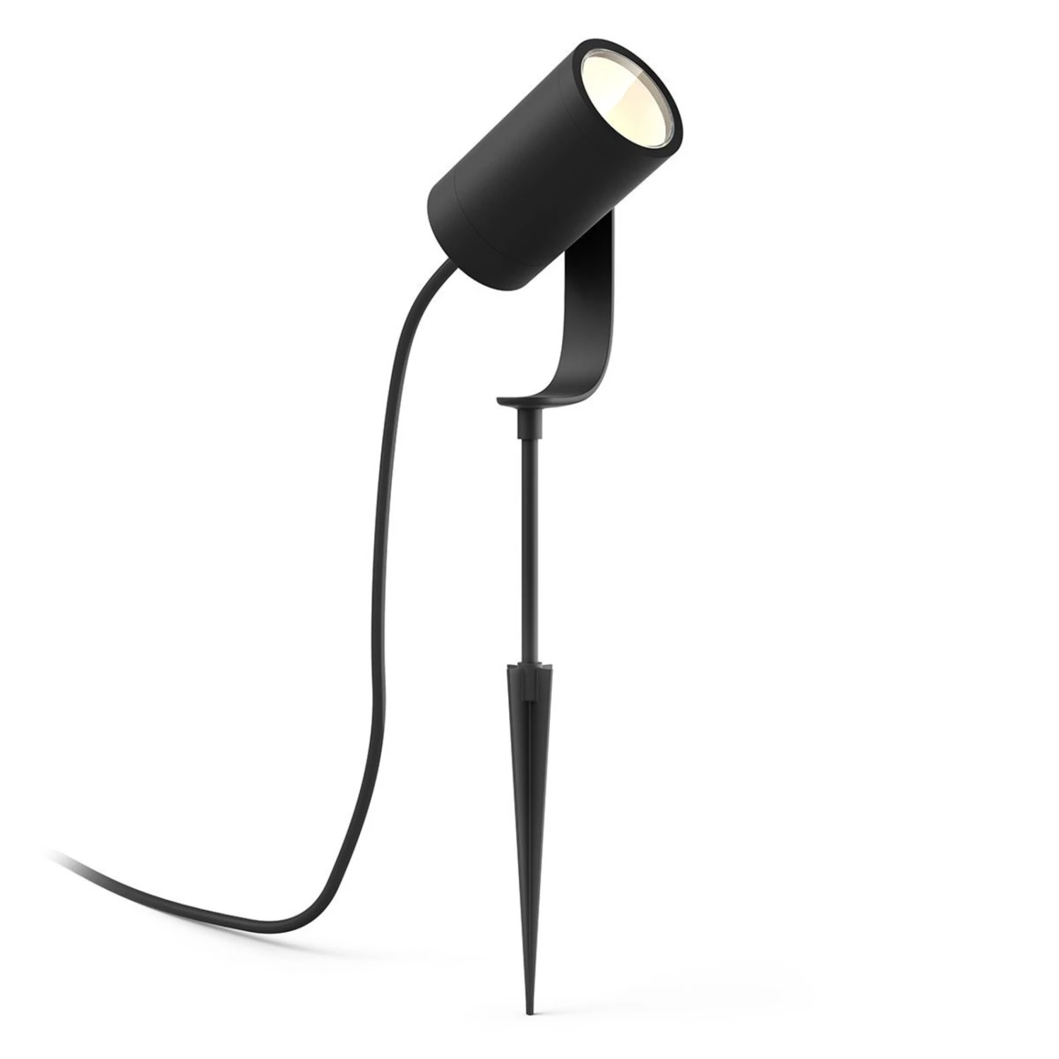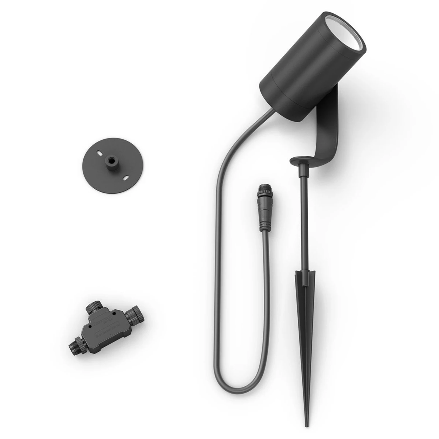 Dieser LED-Spot aus dem Hause Philips Hue dient zur Erweiterung des 1er oder 3er LED-Spots Lily. Er wird mit einem Verbinder, einem 1,5 Meter langen Verbindungskabel, einem Erdspieß und einer Wandhalterung zur variablen Montage geliefert.