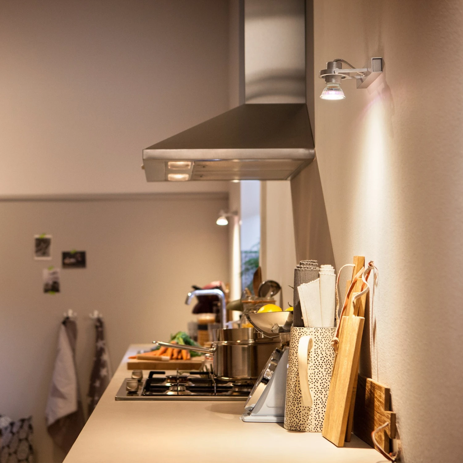 Dieses LED-Leuchtmittel PAR16 mit GU10-Sockel ersetzt herkömmliche Halogenlampen mit 35W. Der klare Glasreflektor strahlt das universalweiße Licht in einem Winkel von 36° aus.