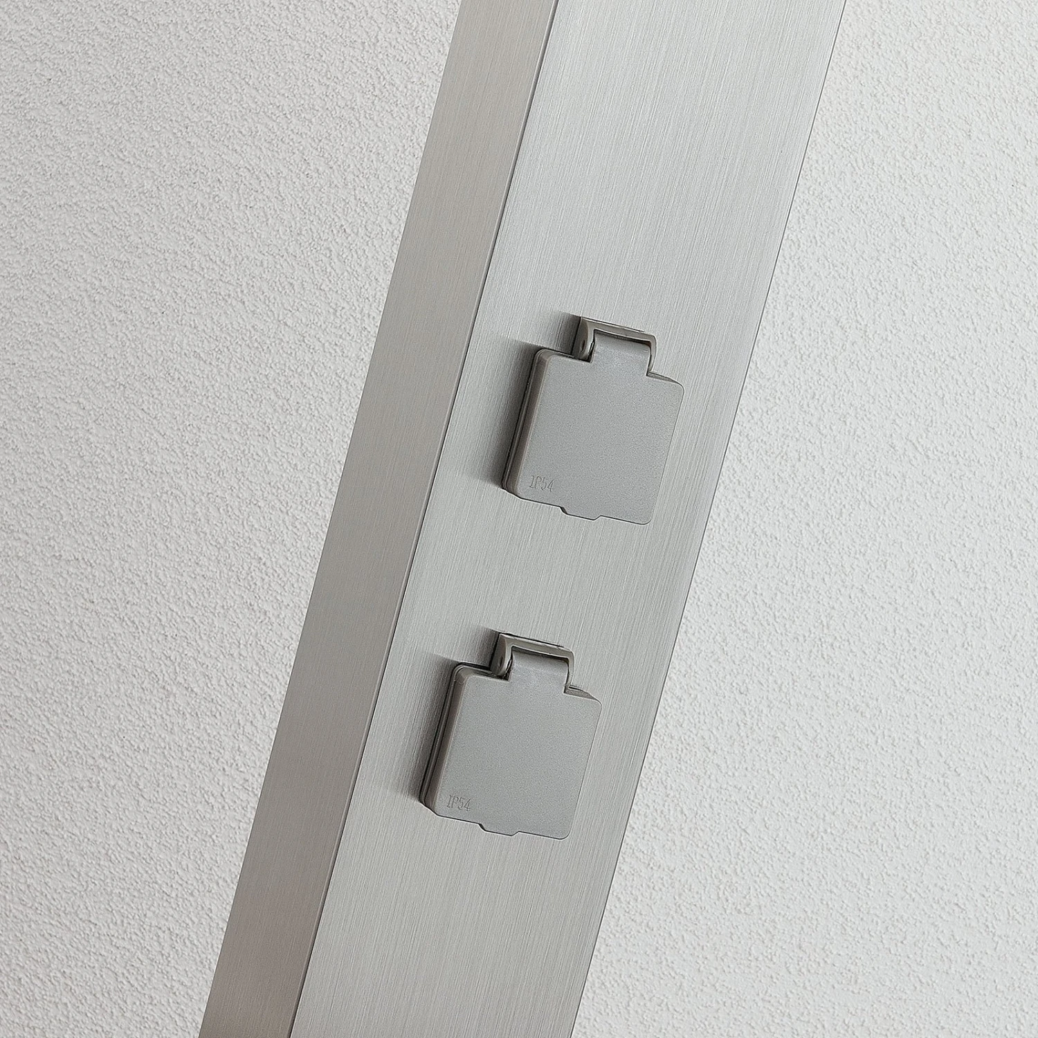 Diese Pollerleuchte erfüllt doppelten Nutzen, denn sie spendet rund um Haus und Garten nicht nur Licht, sondern auch Strom in Form von zwei Steckdosen, die am Edelstahlgestell der Leuchte angebracht und von zwei Klappen bedeckt sind. Das Gestell besteht aus V2A-Edelstahl und ist rostfrei, während der Einsatz aus klarem Polycarbonat als robust und bruchsicher gilt, was im Außenbereich selbstverständlich von nennenswertem Vorteil ist. Hier verbindet sich also die Bereitstellung von Licht mit der Verfügbarkeit von Steckdosenstrom, so dass man strombetriebene Gartengeräte sowie andere Objekte, die Strom benötigen, schnell und unkompliziert in Betrieb nehmen kann. Dank der Schutzart IP54 gut vor Schmutz und Nässe geschützt.