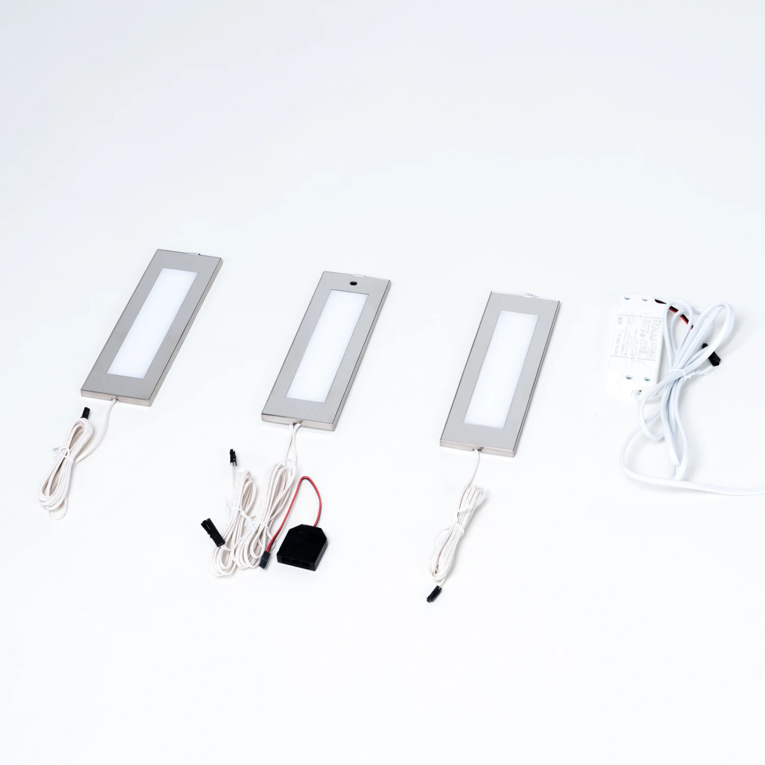 LED-Edelstahl-Unterschrankleuchten Juska im Set mit drei Stück, praktisch für die Küche