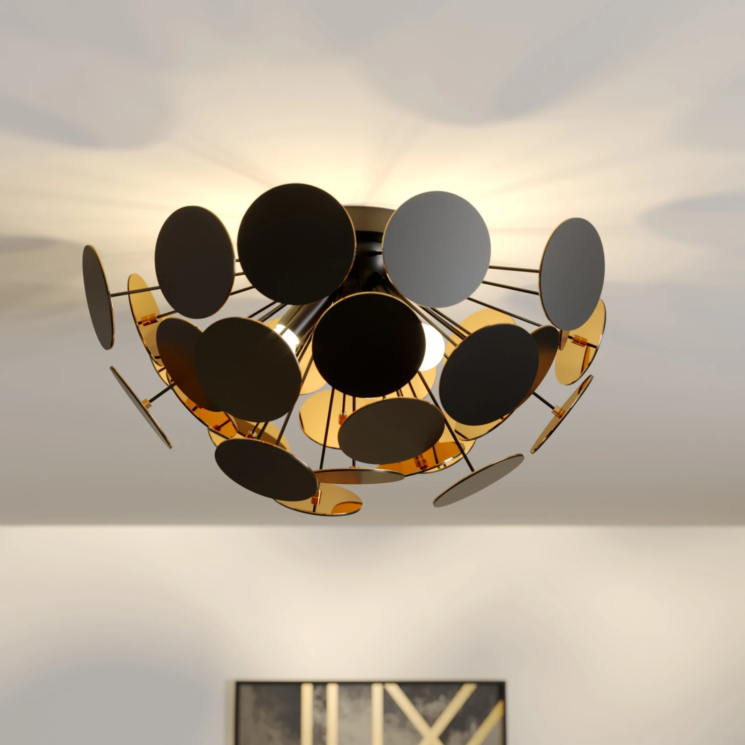 Trendige Deckenlampe Kinan mit schwarz-goldenen Kunststoffscheiben