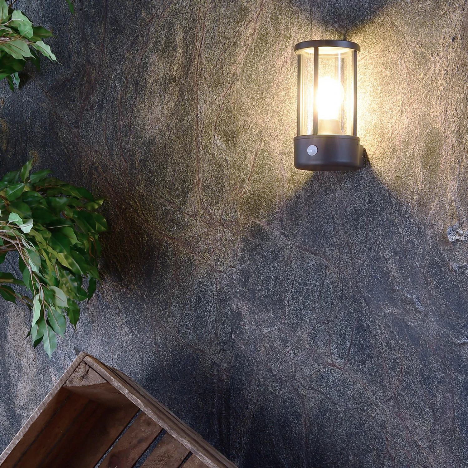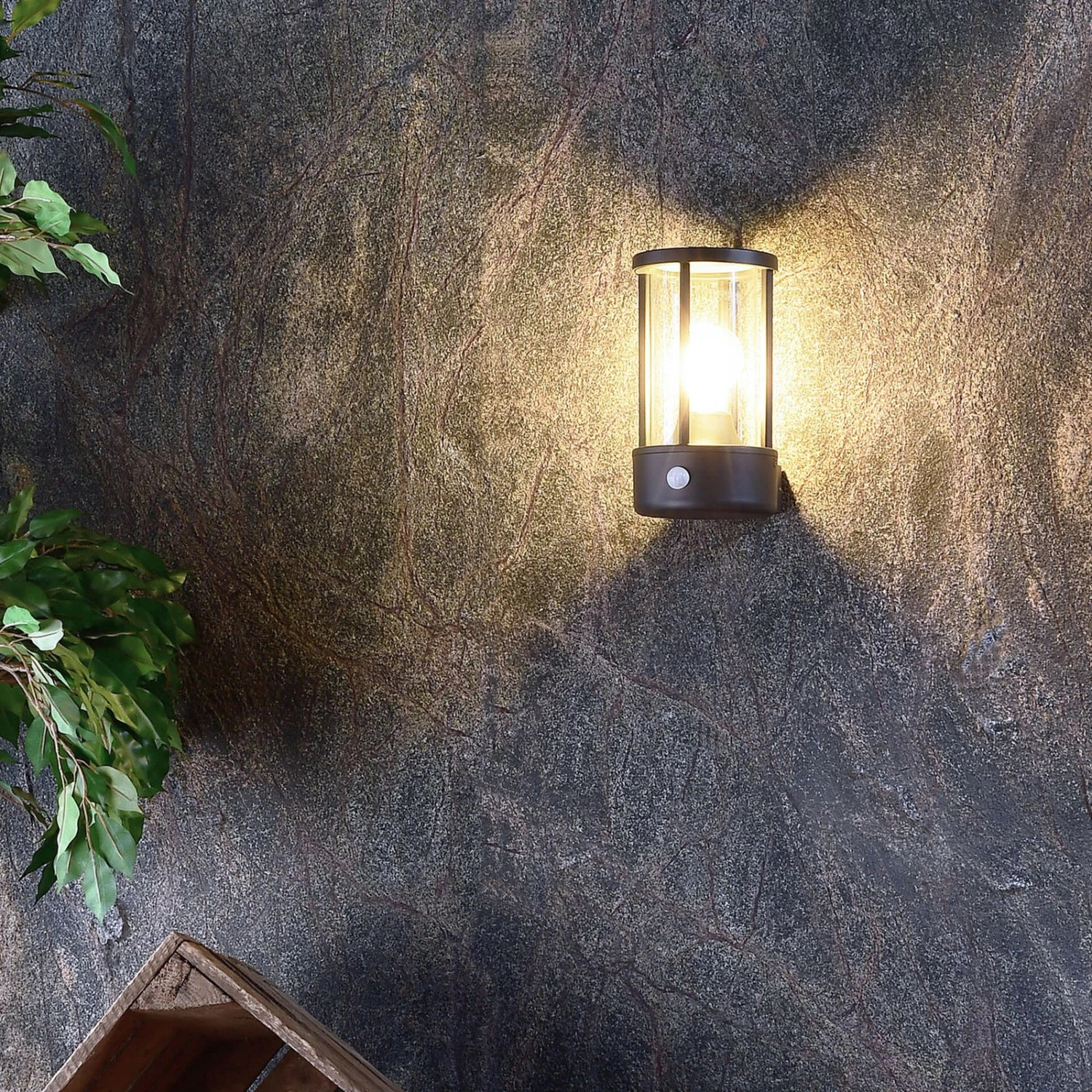 Außenwandleuchte Adebar als moderne Laterne – mit Bewegungssensor ausgestattet