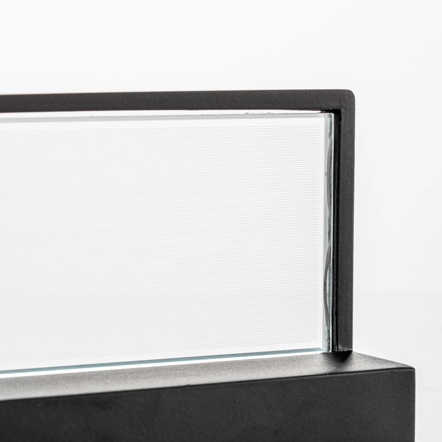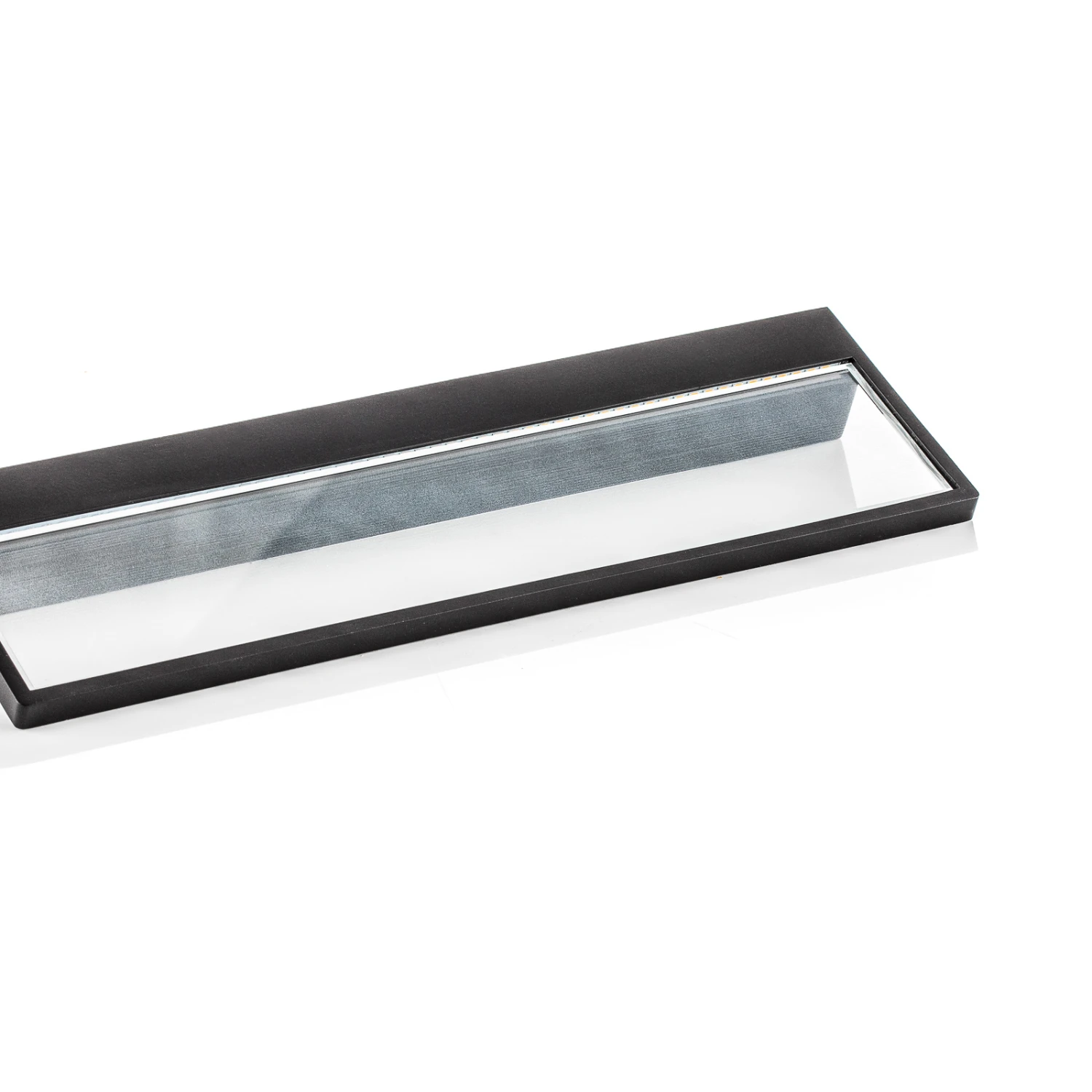 Optisch sehr reduziert tritt die LED-Wandleuchte Crib Wall aus dem Hause serien.lighting auf. Ein rechteckiger Rahmen aus Aluminium umfasst eine transparente Echtglasscheibe, die zum Herzstück der Leuchte wird, sobald man das Licht einschaltet. Über die polierte Kante dieser speziellen Scheibe wird nämlich das LED-Licht eingespeist. Die Glasplatte mit Mikrostruktur ist dann für die Lichtlenkung verantwortlich. Licht wird sowohl nach unten als auch nach oben abgegeben. Mit einem entsprechenden Dimmer (Phasenabschnittdimmer, exkl.) kann die Wandleuchte auch gedimmt werden.