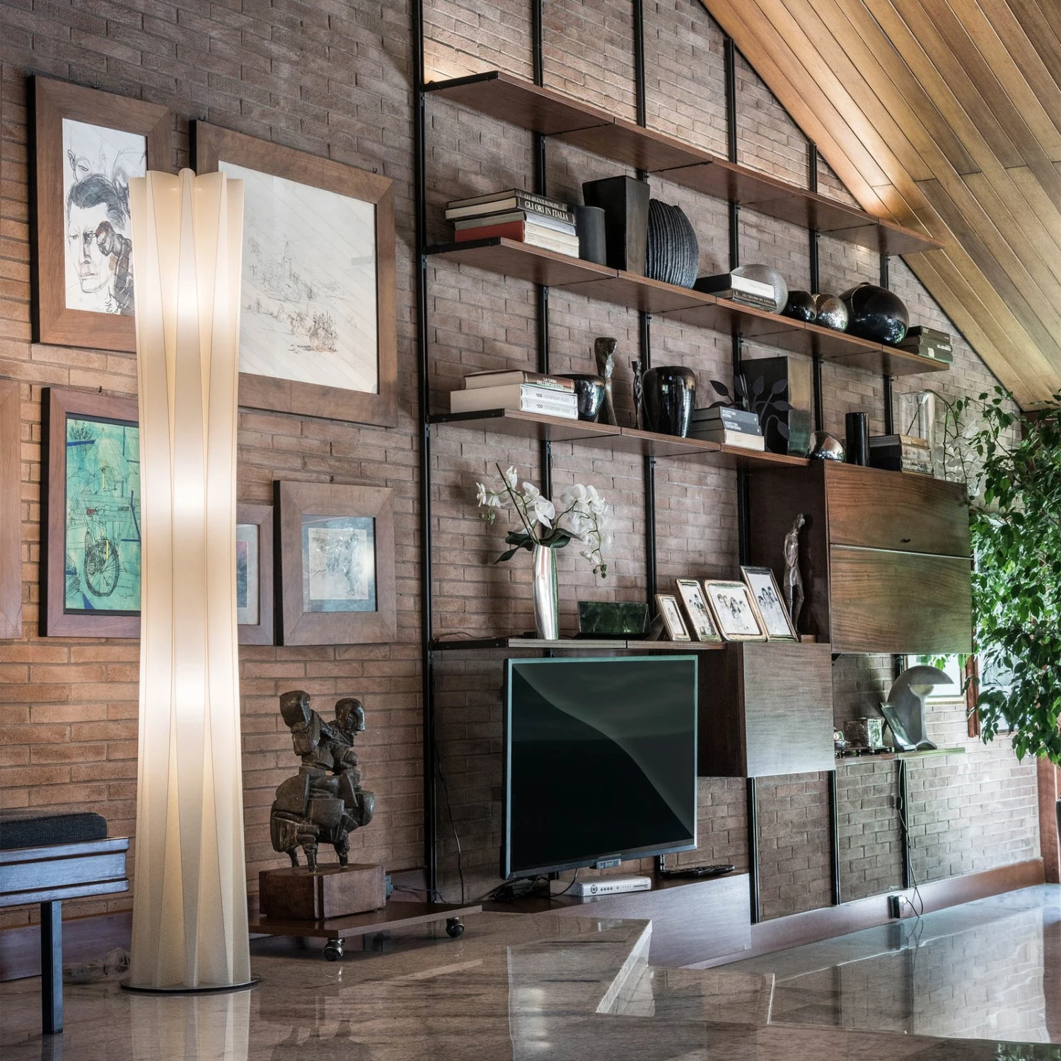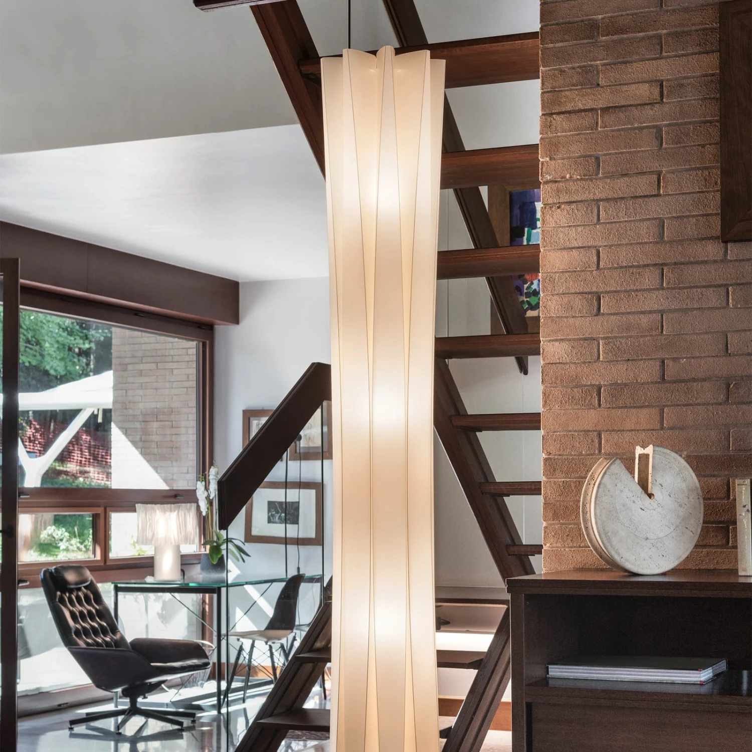 Die schöne Stehleuchte BACH aus hochwertigem Kunststoff ist in edler Faltoptik gearbeitet, die der Leuchte eine elegante Note verleiht. Die Form überzeugt durch zeitlose Eleganz, die in jedem Raum eine gute Figur macht.