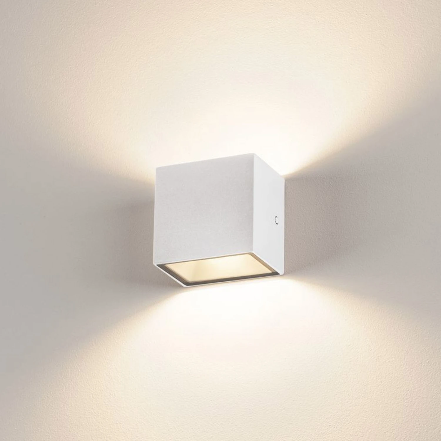 Zweiseitig abstrahlende LED-Außenwandlampe Sitra Cube mit effizienten LEDs