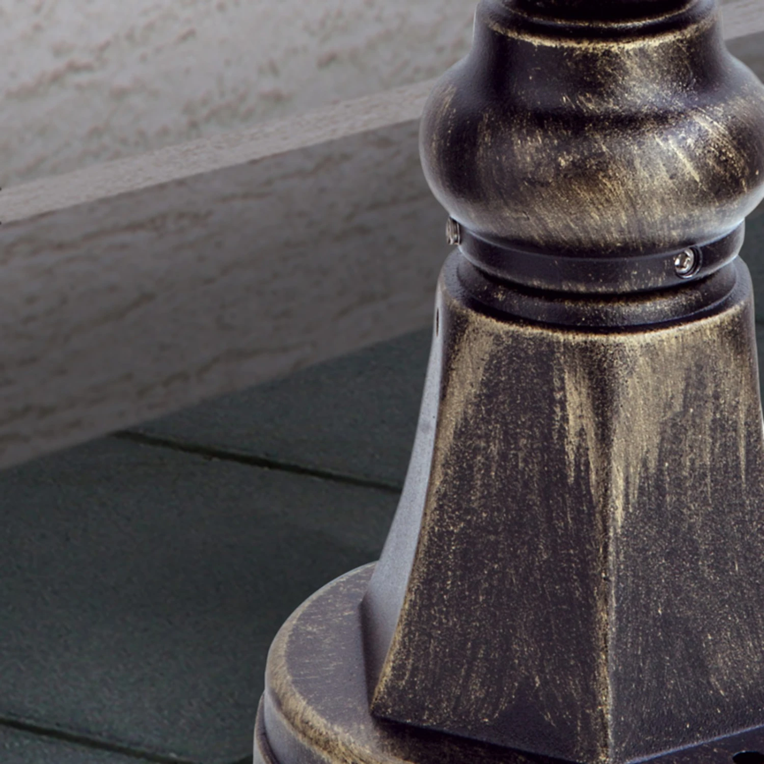 Die hochwertigen Materialien der Sockelleuchte zeigen eine exzellente Verarbeitung. Auch die Farben der Leuchte und der Glasscheiben sind aufeinander abgestimmt. Das Leuchtengestell schimmert in Schwarz-Gold und die Glasscheiben am Lampenkopf zeigen ein zartes Rauchgrau. Die Sockelleuchte Puchberg hilft nicht nur nachts den richtigen Weg zu finden, denn tagsüber ist sie ein Hingucker in jedem Eingangsbereich.