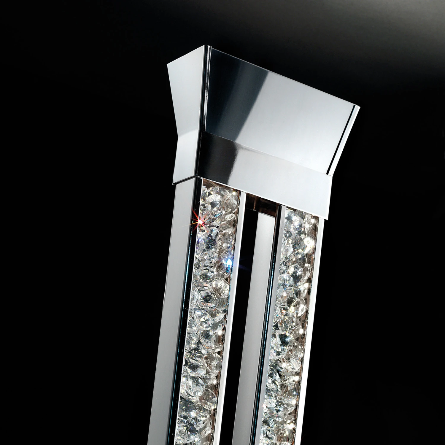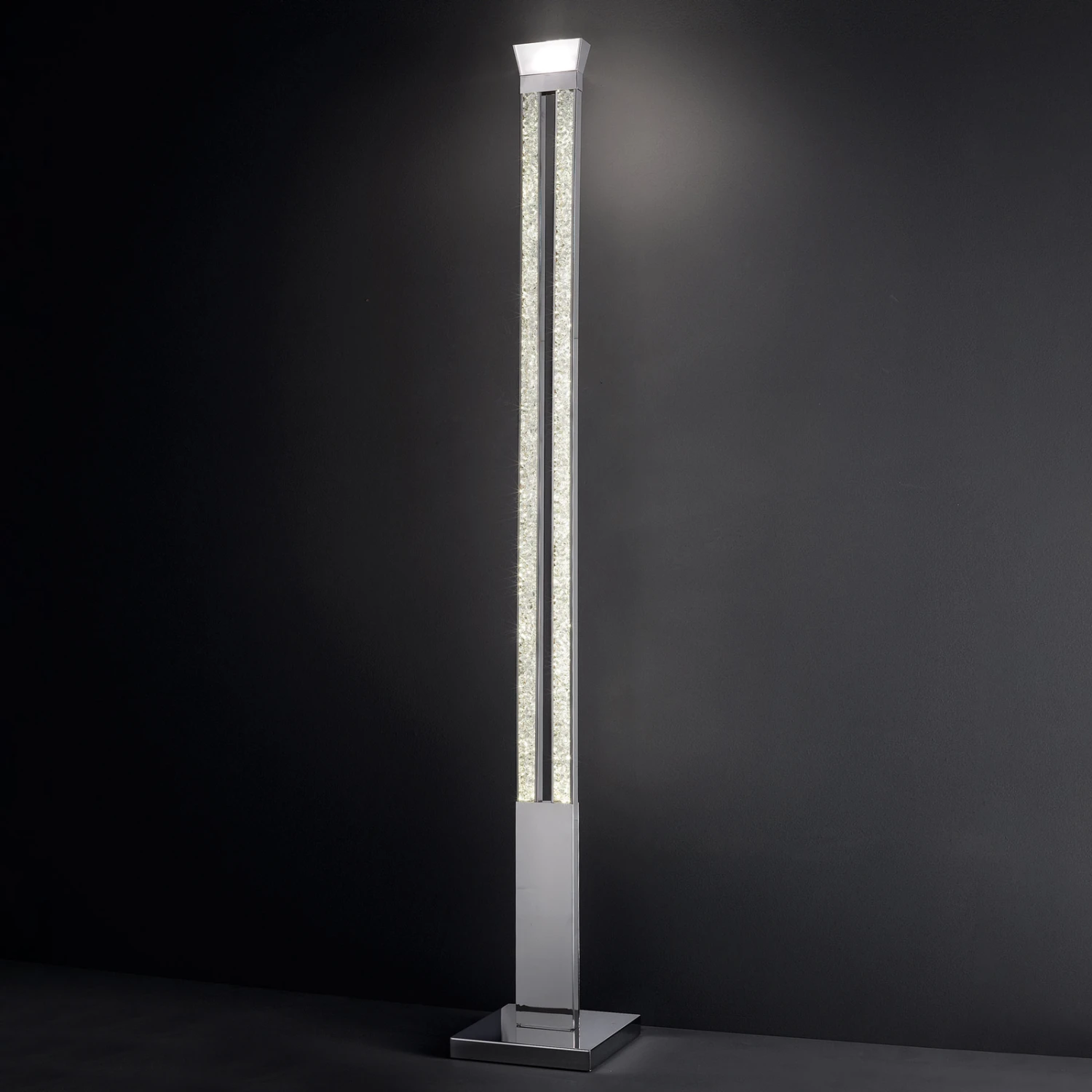 Die schicke Stehleuchte ist mit einem LED-Strip ca. 20 W hinter dem schimmernden Glas ausgestattet. Das dadurch entstehende, funkelnde Lichtspiel macht diese Stehleuchte zum dekorativen Beleuchtungsobjekt im Raum.