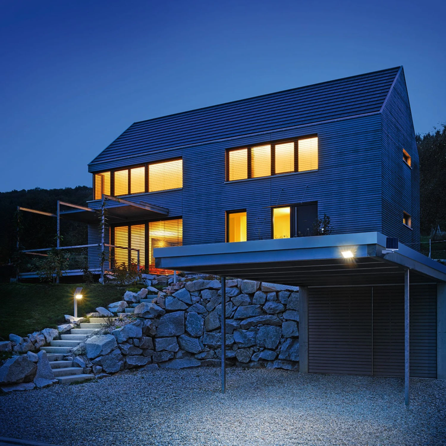 Durch das innovative Steinel-LED-System erzeugt die Leuchte eine Helligkeit von 150 Lumen und beleuchtet damit einen Bereich von bis zu 20 m² – ideal somit für Hofeinfahren, große Eingänge oder Wege rund ums Haus.