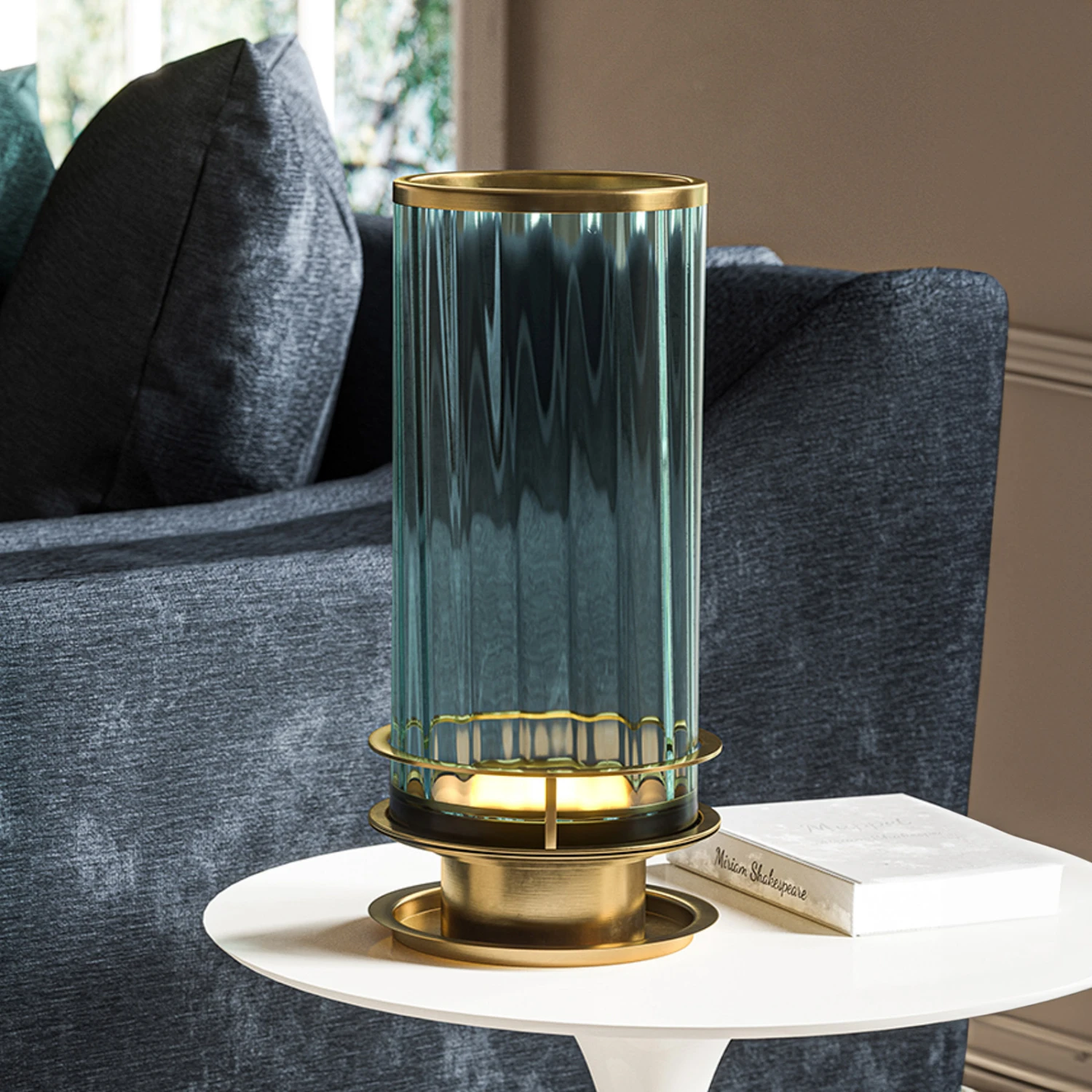 Tischleuchte Arno mit Schirm aus mundgeblasenem Glas