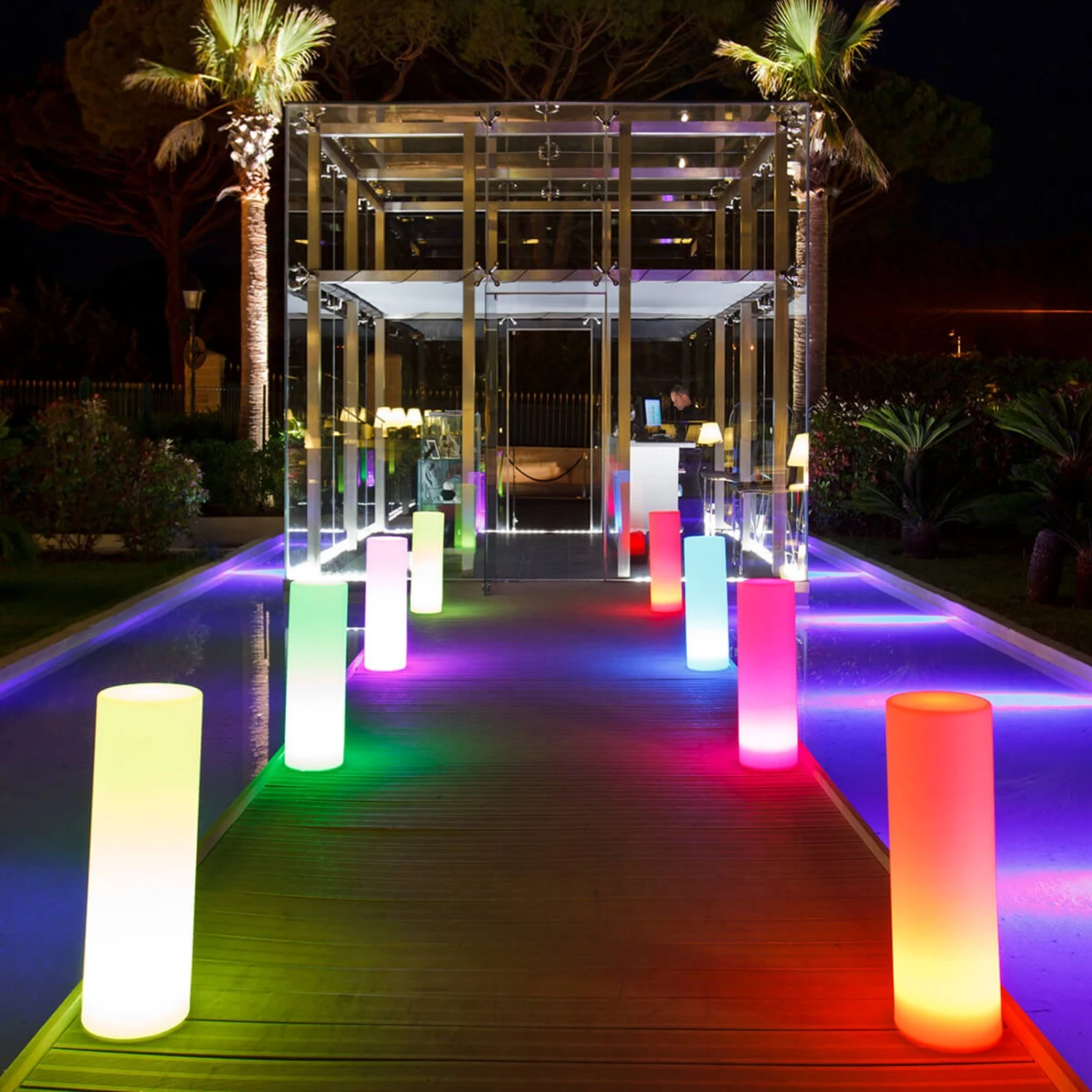 Besonders gut eignet sich die Dekorationsleuchte Tower für Events in gewerblichen und gastronomischen Bereichen, denn mit der Leuchte können diese Bereiche nicht nur einzigartig illuminiert werden, sondern es lassen sich auch Beete, Wege etc. eindrucksvoll abgrenzen. Der Turm aus uv-beständigem und witterungsresistentem Kunststoff ist mit einer IC-Leuchteinheit ausgestattet und wird per Akku betrieben. Zum Aufladen des Akkus in der Leuchteinheit kann diese aus dem Turm herausgenommen werden und einfach auf die Ladestation (Teil der Lieferung) aufgesetzt werden. Voll aufgeladen versorgt der Akku die Leuchte für bis zu 24 Stunden mit Energie – je nach eingestelltem Helligkeitsgrad.