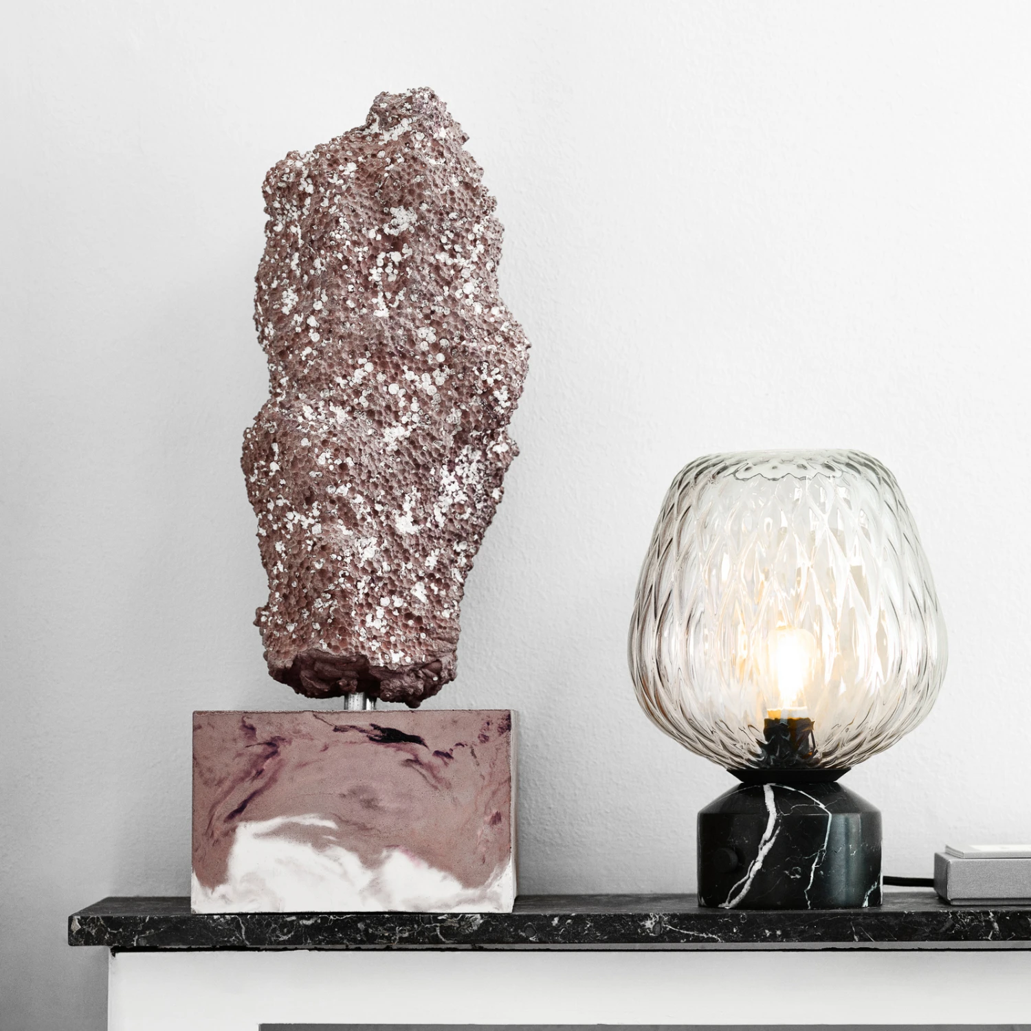 Dimmbare Designer-Tischleuchte Blown SW6 aus mundgeblasenem Glas und Marmor