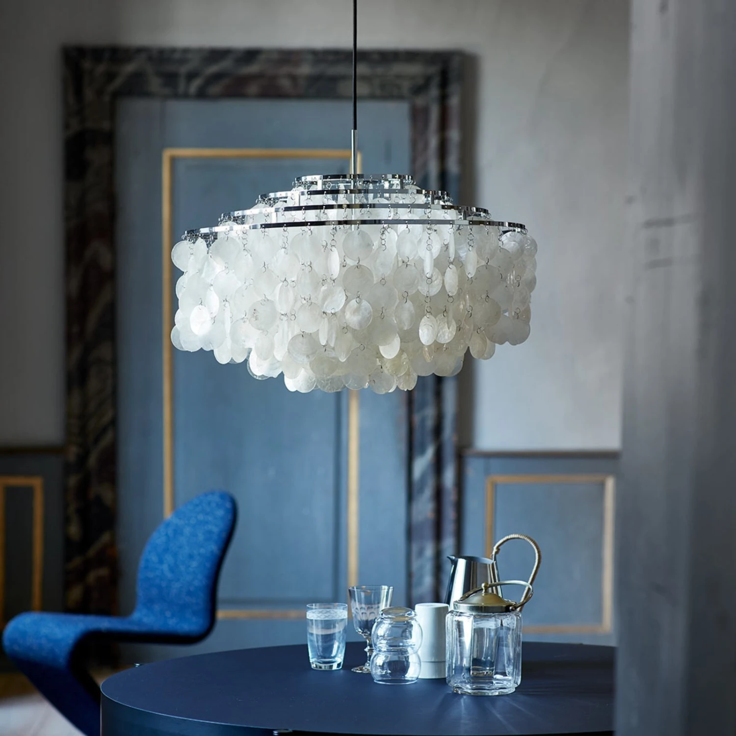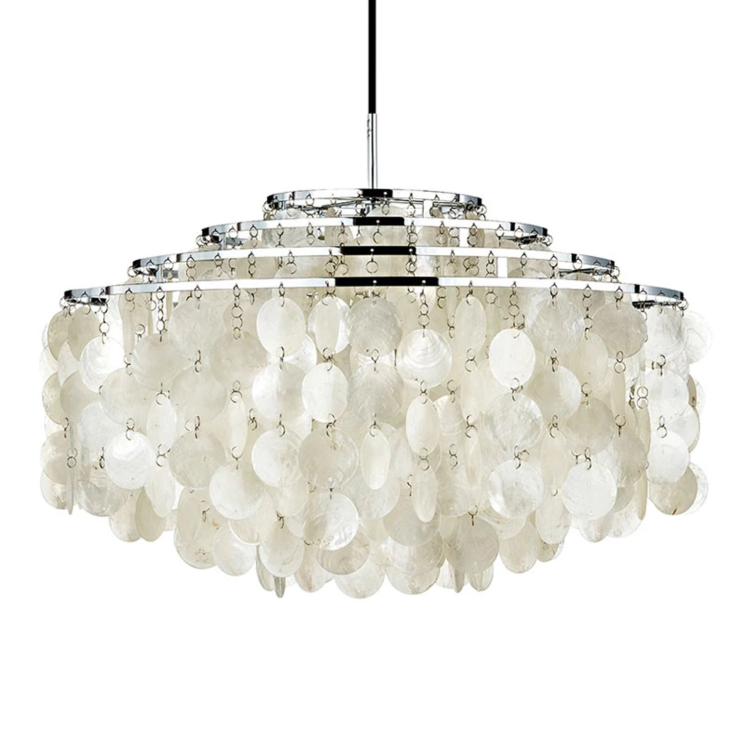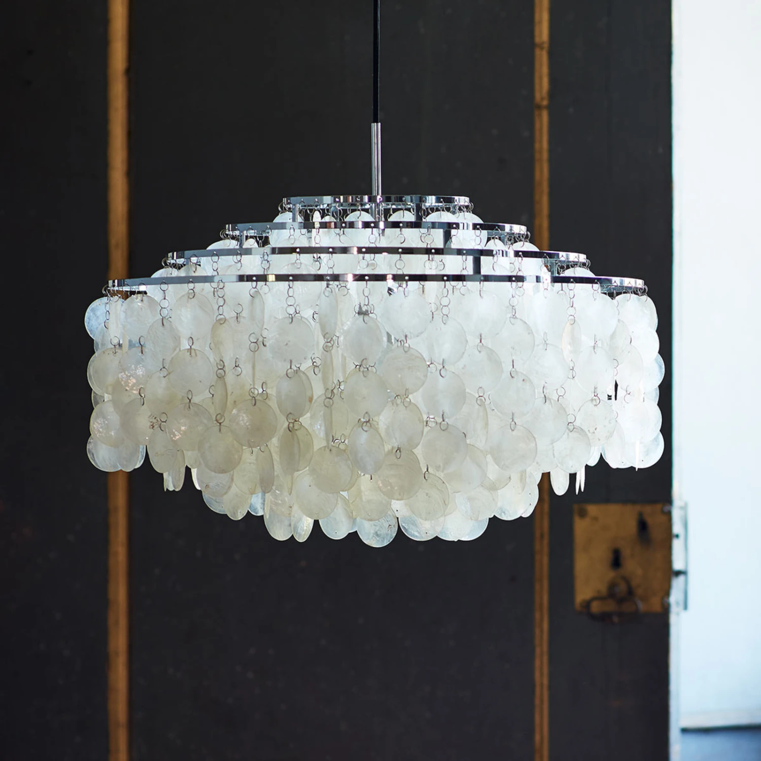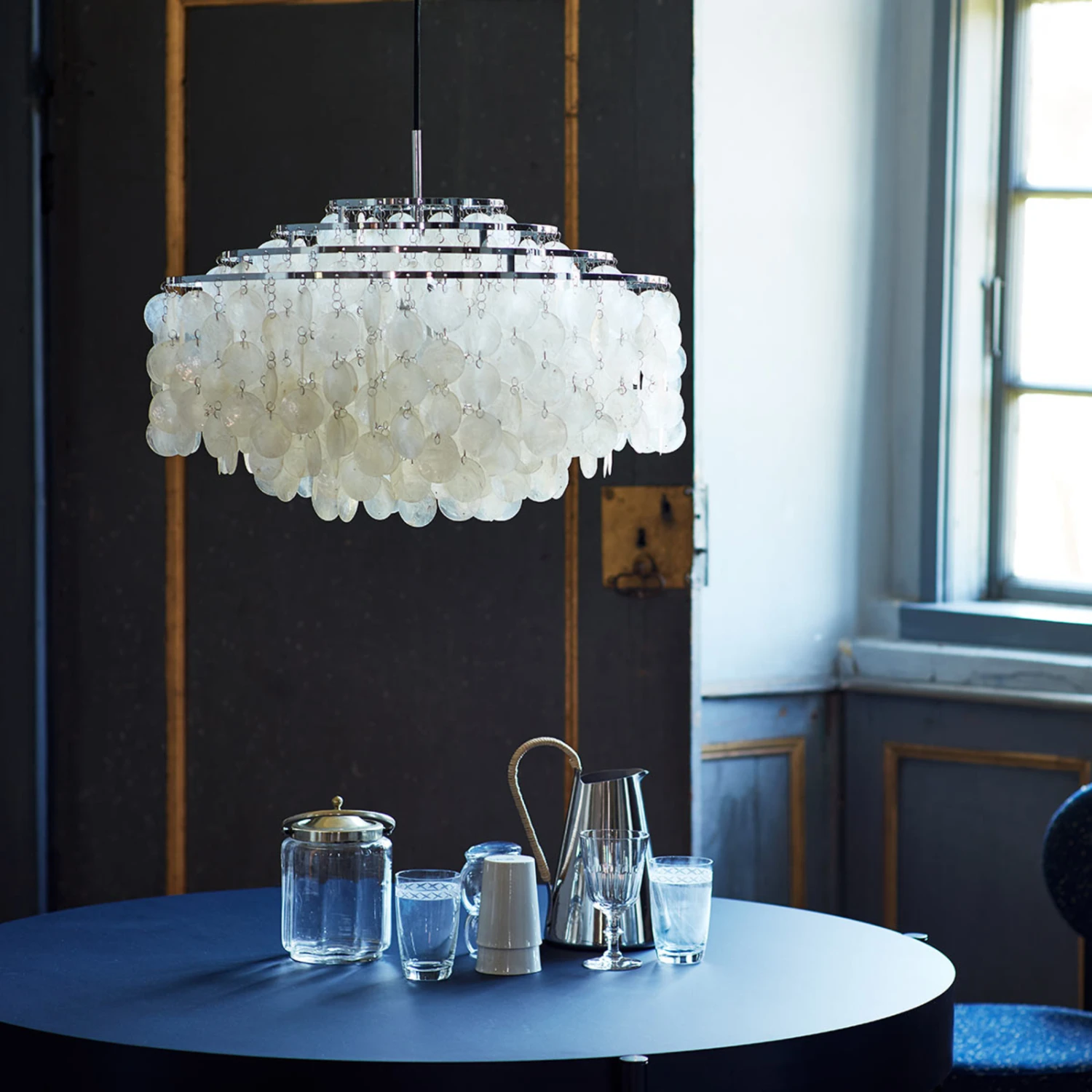 Durch Originalität und ausgefallene Designs stechen die Kreationen des dänischen Designers und Architekten Verner Panton hervor. Besonders in den 1960er und 1970er Jahren revolutionierte Panton mit seinen avantgardistischen Entwürfen die internationale Welt des Möbeldesigns. Der nahtlose Werkstoff Kunststoff und das Spiel mit der Transparenz werden zu seinen zentralen Gestaltungselementen. Auf der Suche nach einem Material, das den Betrachter im Zusammenspiel mit Licht in Staunen versetzt, weckte das irisierende Biomineral Perlmutt 1964 das Interesse des Dänen. Davon inspiriert, entwarf er die Leuchtenserie Fun, die geprägt ist von Pantons Spiel mit der Transparenz einerseits und den faszinierenden Eigenschaften von Perlmutt – der „Mother of Pearls“ – andererseits.