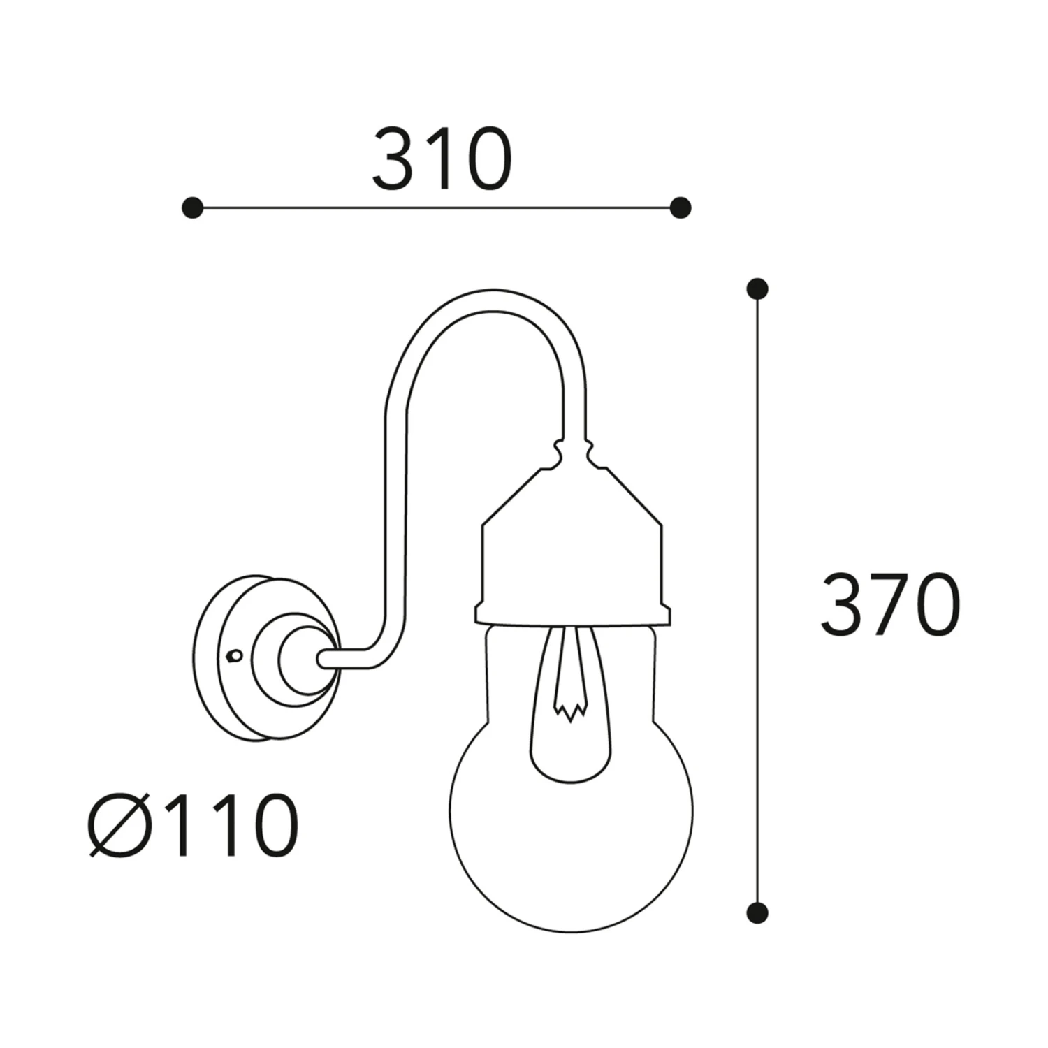 Wandlampe 1950N mit gewölbtem Glas – für außen
