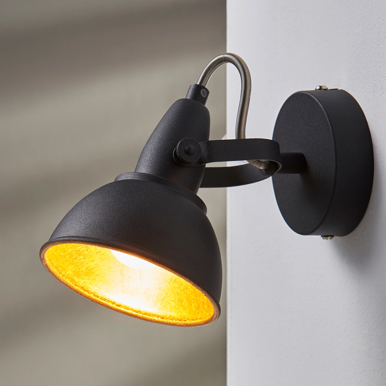 Schwarze Wandleuchte Julin mit goldener Innenseite im Used-Look
