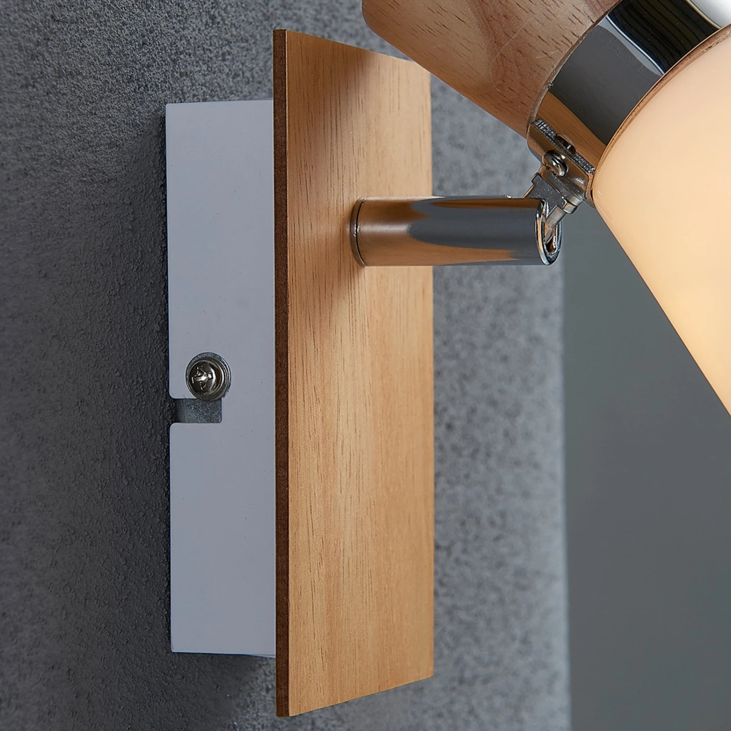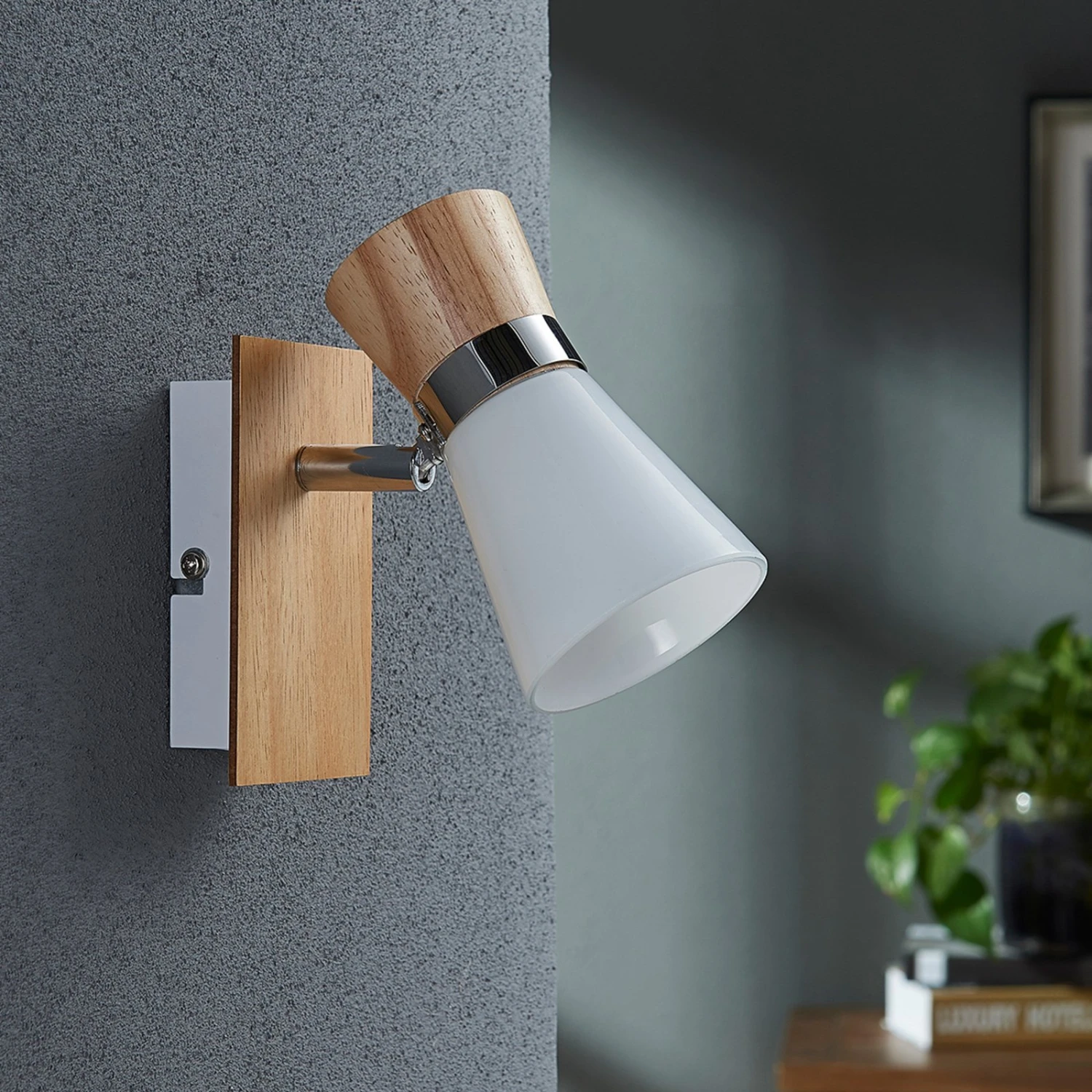 Schöner Holz-Strahler Vivica mit weißem Glasschirm