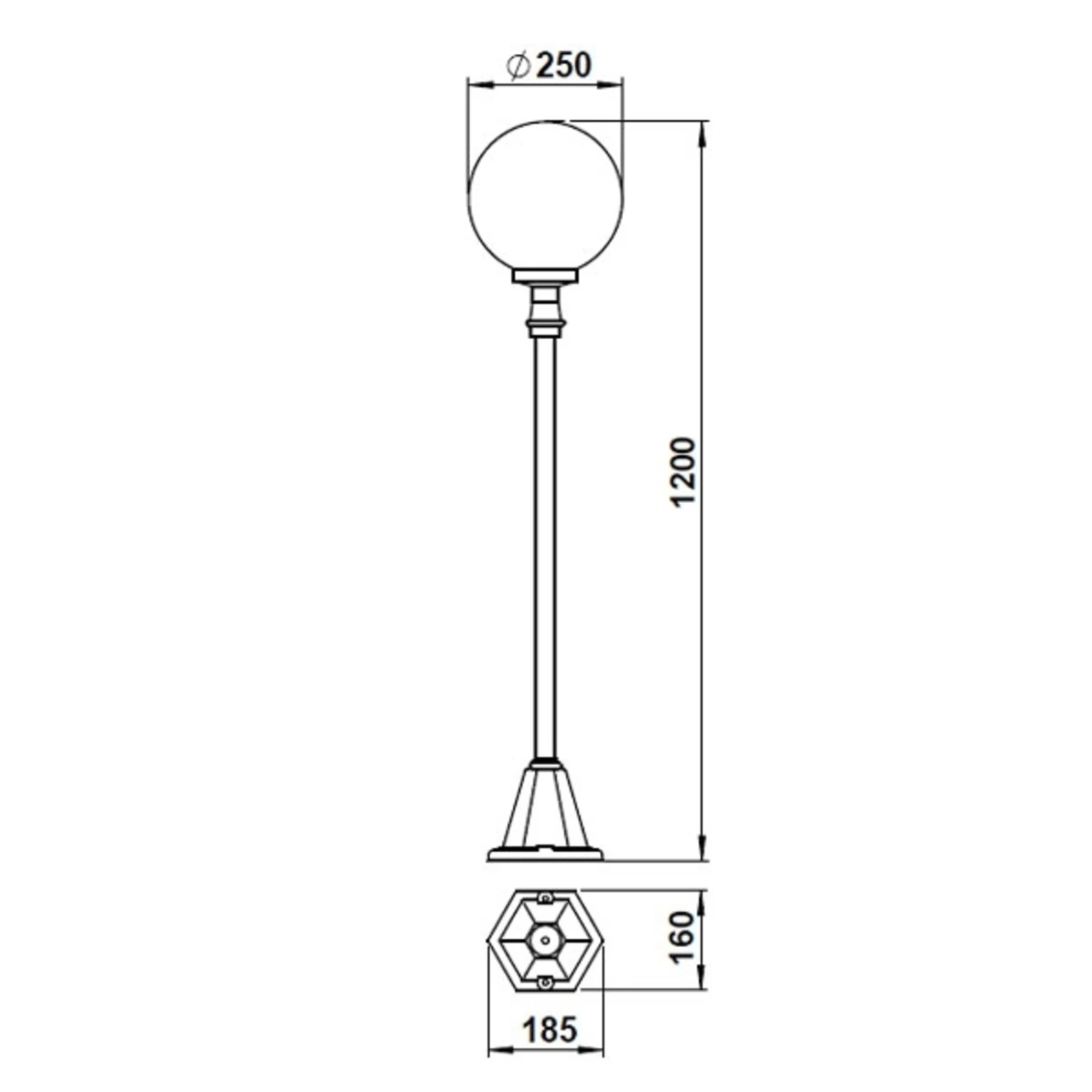 Hochwertige Wegeleuchte mit Kugel aus Blasenglas